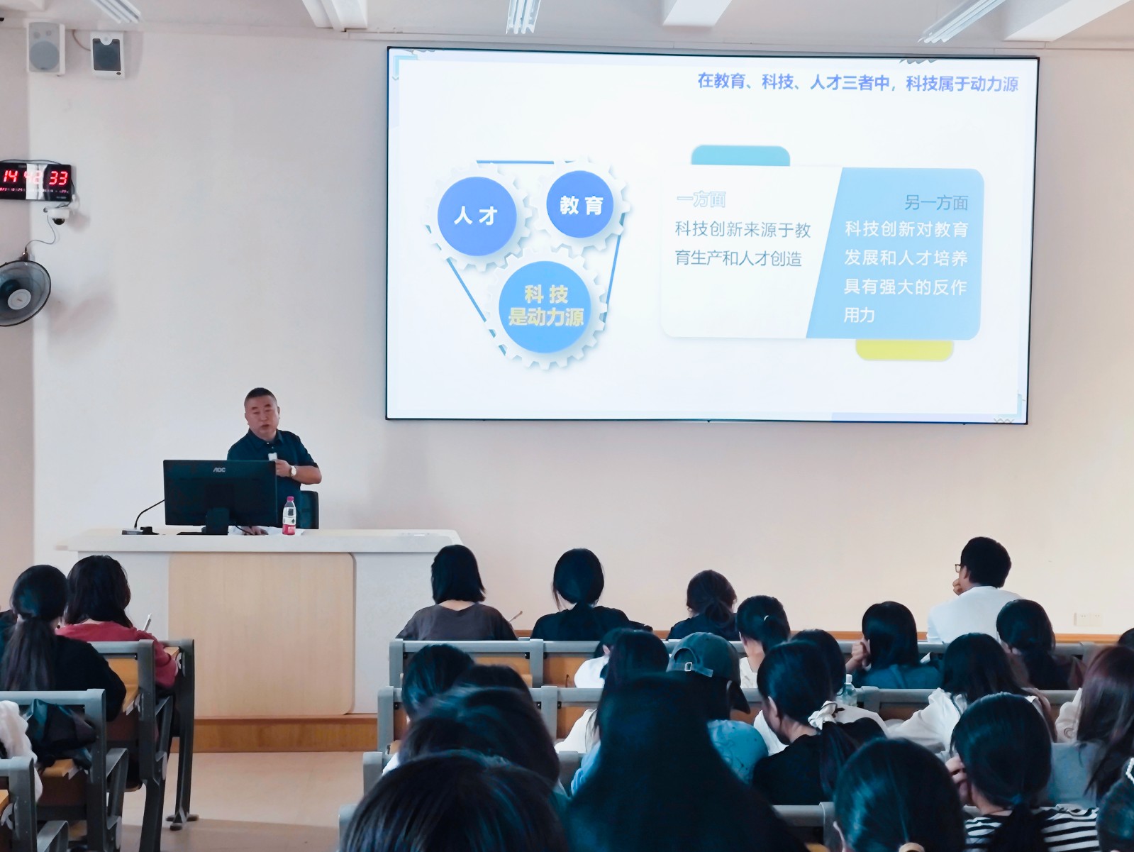 李清龙以《加快建设教育😨、科技🔣、人才强国》为题,系统阐述了党的二十大报告将教育、科技🧒🏼、人才进行的“三位一体”统筹安排和一体部署👇🏼,论述了在新时代背景下,教育🥰、科技和人才三者的辩证关系。他指出,作为青年大学生👩🏿🦲,同学们更应该明晰人才教育的重要性,坚定自身理想信念,树立家国情怀🛄,强化自我学习能力。
