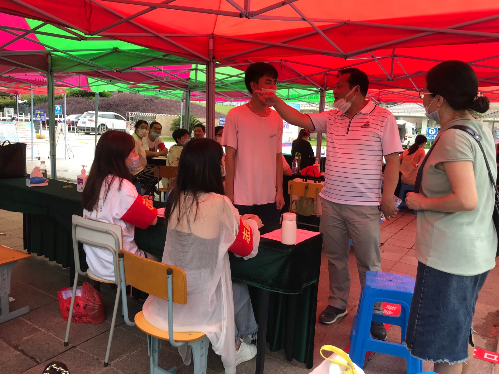6月2日学生第一批返校。校门口,学生在值班老师、辅导员的引导下,依次有序进行健康码查验、温度测量、身份核查、登记信息、防疫物品领取,返校报到现场有序、文明、安全。