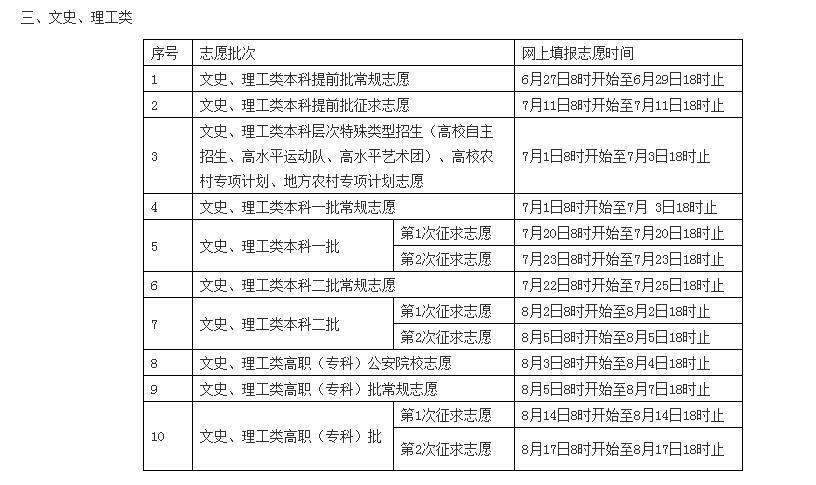2017年福建省普通高等学校招生考生网上填报志愿时间安排表