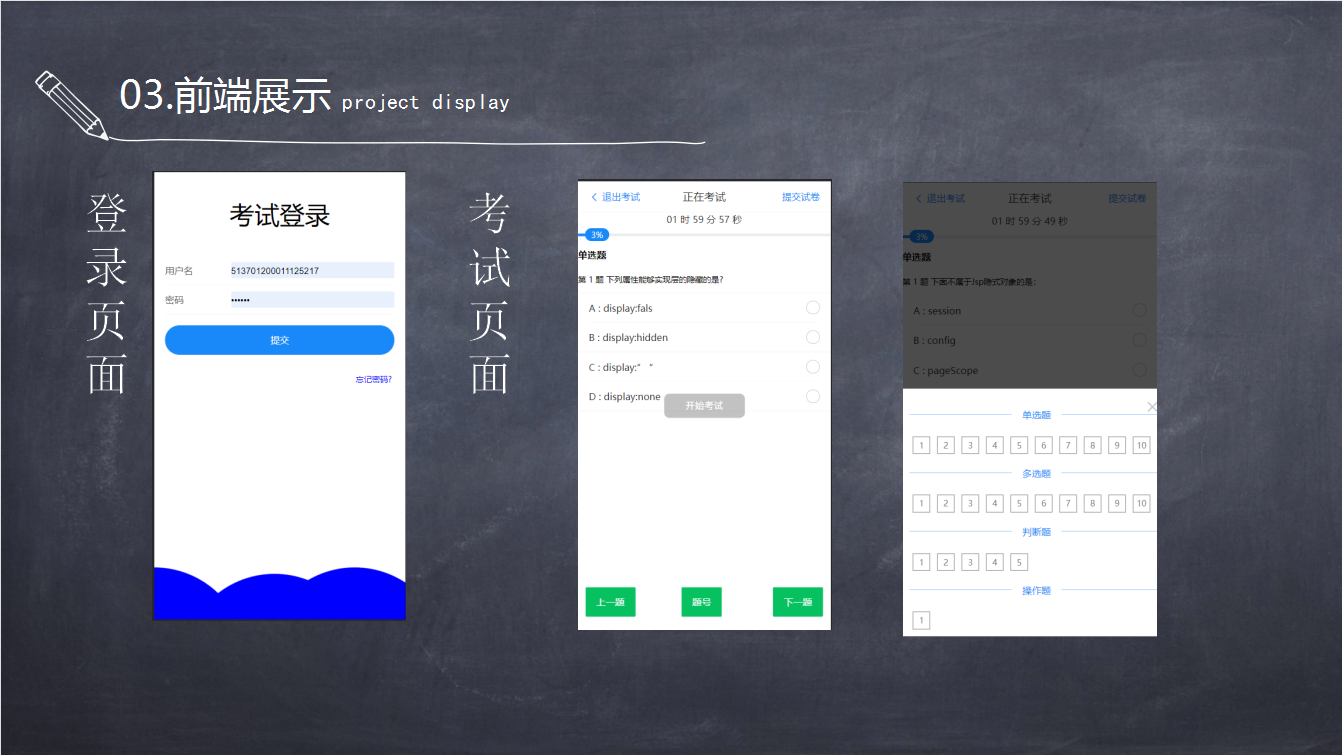 传统考试也只能通过一张写满问题的答卷来检测一个人的学习水平,这样的学习方式极为枯燥,不能满足现代社会日新月异的发展需求,而智能化的学习、考试信息系统正好弥补了不足之处,实现了人们对知识的追求这一美好愿望。 于是为提升教学水准🙆♂️,规范教学活动,根据广大学生的需要,开发一套线上考试系统,用于各个高校的教学成果检验,以便于动态实时地把握学生的学习效果,检测教学成果➰3️⃣。