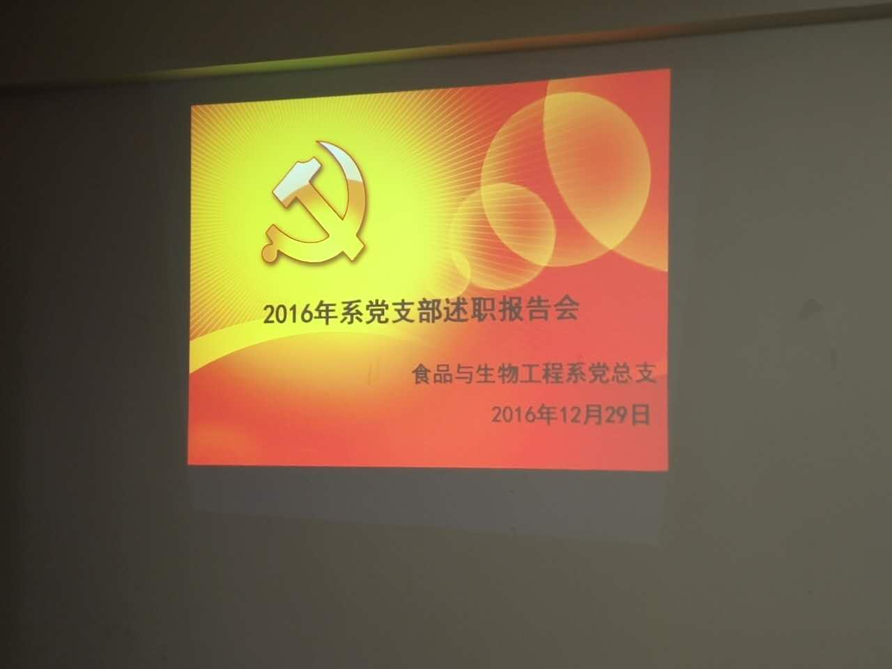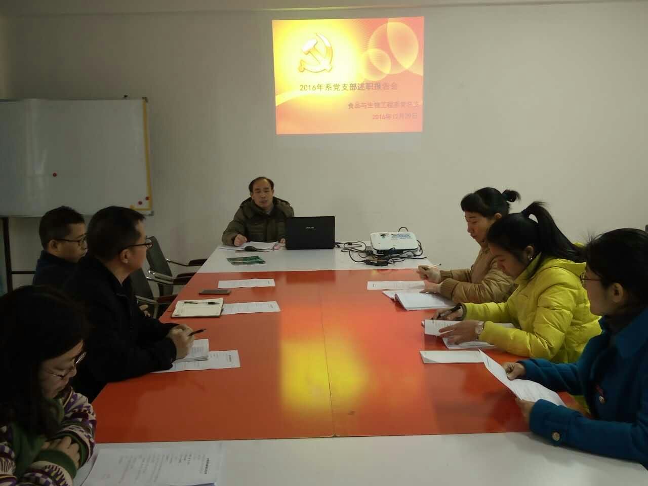 2016年12月29日上午👩🏻🍼,食品与生物工程系党支部述职报告会在办公楼407会议室举行📻,系第一党支部书记鞠璐宁同志及第二党支部书记黄妍同志分别代表各自支部向系党总支作了2016年党建工作及党风廉政建设工作方面的述职,系党总支郑启阶同志🕓、张金良同志等参加了述职评议会🫵🏽。