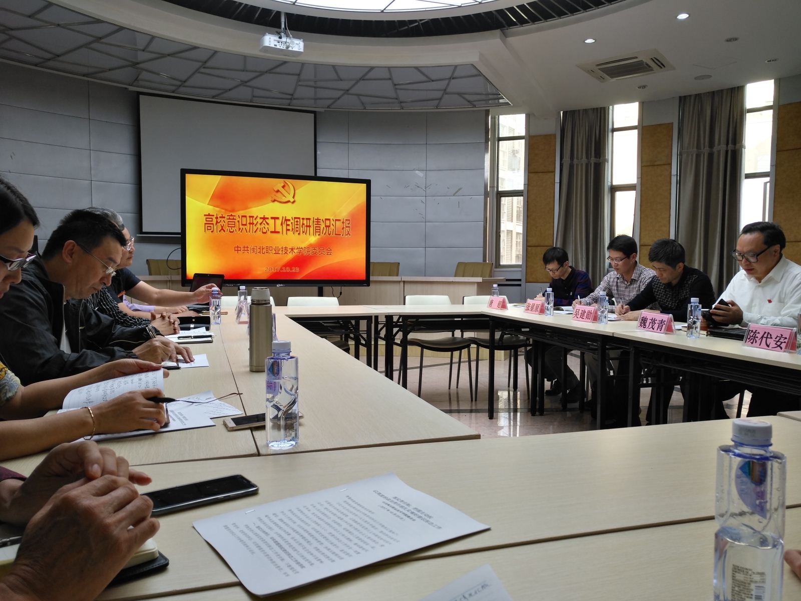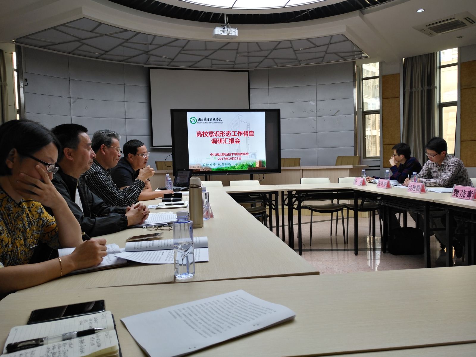 10月23日下午👰🏻♂️,南平市市委宣传部副部长魏茂青一行到我院开展意识形态工作调研,院党委高建富书记主持了会议。高书记从落实主体责任牢牢把握高校意识形态工作领导权、把握思想状态牢牢掌握高校意识形态工作话语权、增强阵地意识牢牢掌握高校意识形态工作管理权三个方面进行了汇报。魏部长对我院意识形态工作表示肯定,要求我院在工作中要创新工作方法、加强宣传阵地建设,切实把高校意识形态工作落到实处🙋🏻。参加汇报会我系领导有常务副书记郑启阶⛹🏿、学生科长胡建辉及支部书记鞠璐宁等👩🏽🏭。