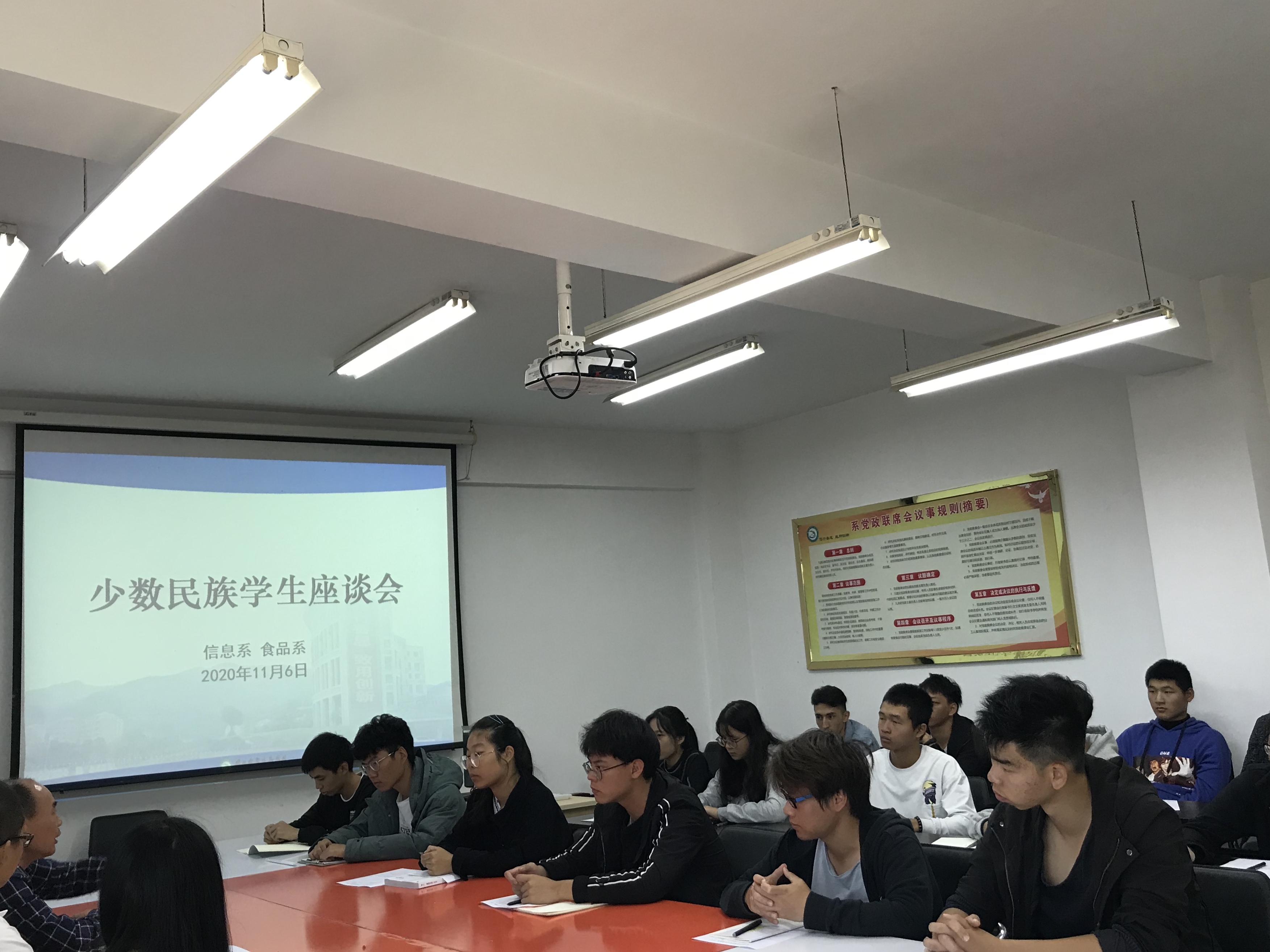 为贯彻落实国家民族政策,深入了解少数民族学生各方面情况,11月6日上午↙️,我系在行政楼407室召开少数民族学生座谈会。系党总支副书记郑启阶、学生科科长胡建辉、辅导员及少数民族学生代表参加了座谈会。
