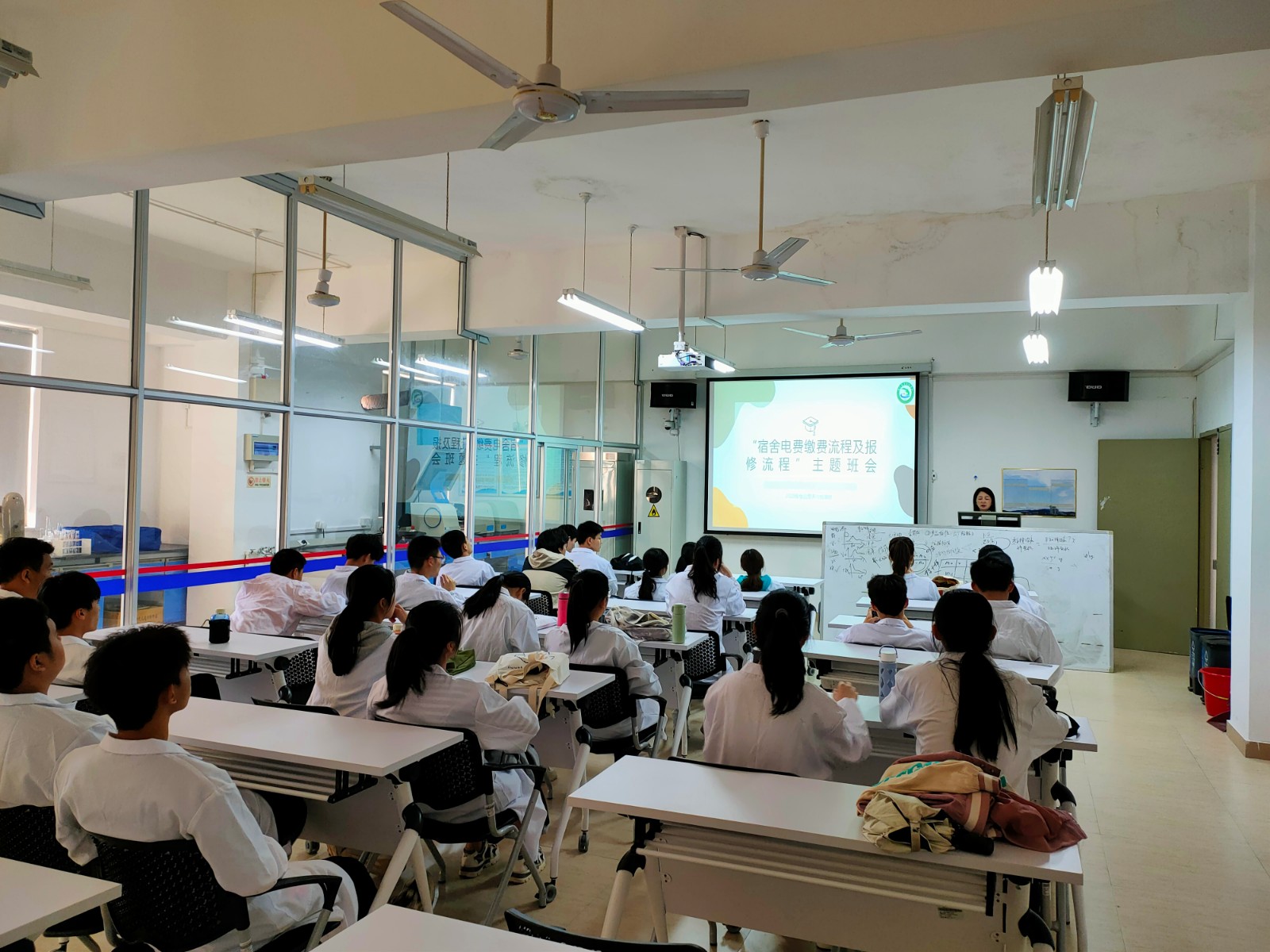 班会上🎢,班主任们耐心向同学们讲解了宿舍电费缴费流程及宿舍报修流程的具体操作🐼,同时向学生普及了宿舍用电安全知识🍠,提高学生的用电安全和保护宿舍公共财产意识。