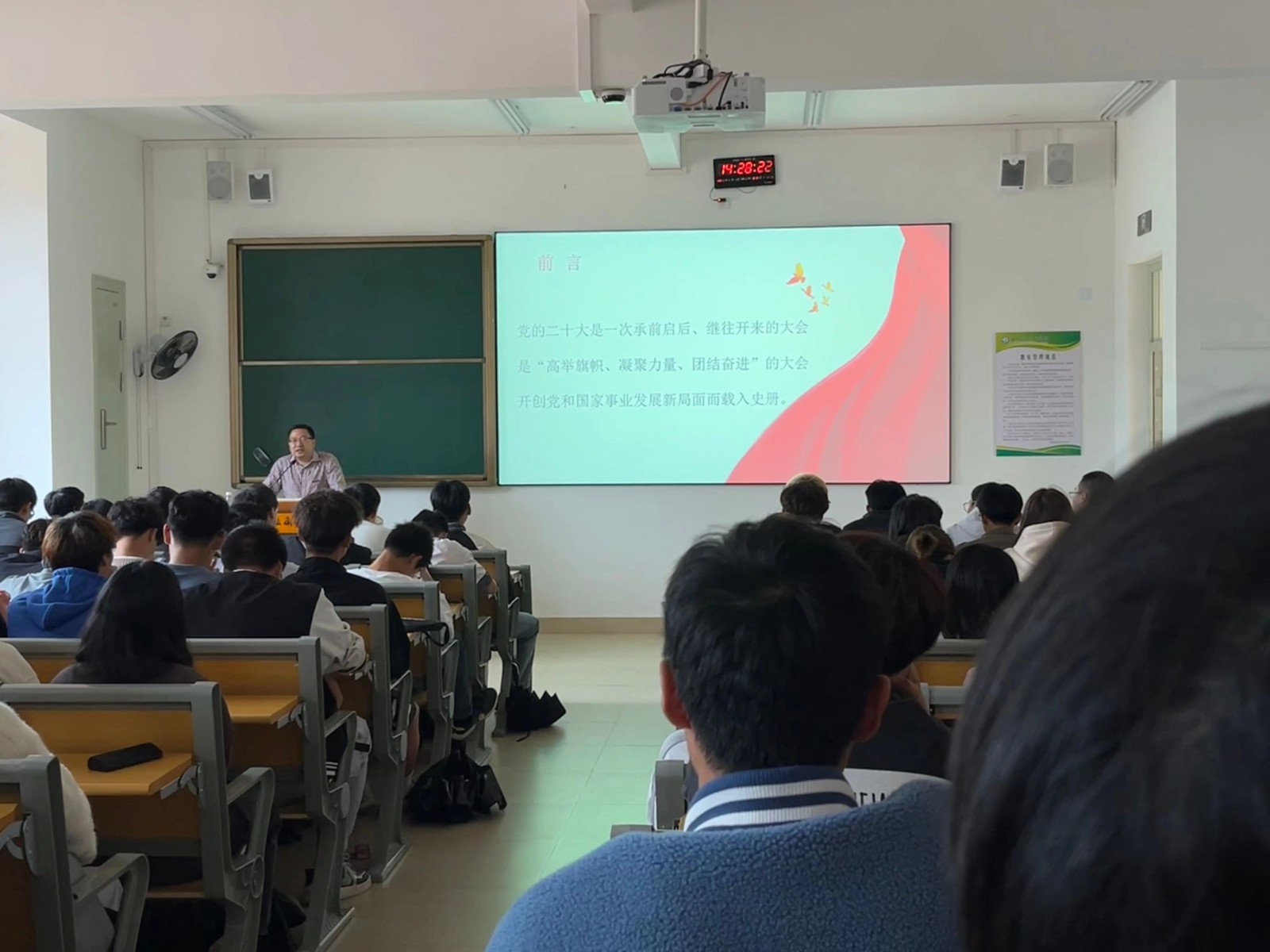 “学习二十大,永远跟党走,奋进新征程”,为深入宣传学习党的二十大精神🪙,2022年11月16日下午,院党委委员组织部(统战部)部长蔡军在阶梯教室102👩🏻🍳,为信息系和食品系学生开展了一次党的二十大精神宣讲。