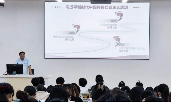 谢友平以“开辟马克思主义中国化时代化新境界”为主题⚂,从“内涵博大精深”🧙🏻♂️👩🏻、“彰显实践伟力”、“绽放真理光芒”三个方面展开🛬♘,系统的阐述了习近平新时代中国特色社会主义思想创立和发展的时代背景以及主要内容🀄️;他从历史与现实的角度出发,让同学们了解到了中华民族从站起来、富起来到强起来的不同历史时期的伟大变革与伟大成就,并通过大量鲜活案例的解读,强调了身为青年大学生,只有坚持对马克思主义的坚定信仰、对中国特色社会主义的坚定信念,增强“四个意识”、坚定“四个自信”、做到“两个维护”,才能以更加积极的历史担当和创造精神为发展马克思主义作出新的贡献。