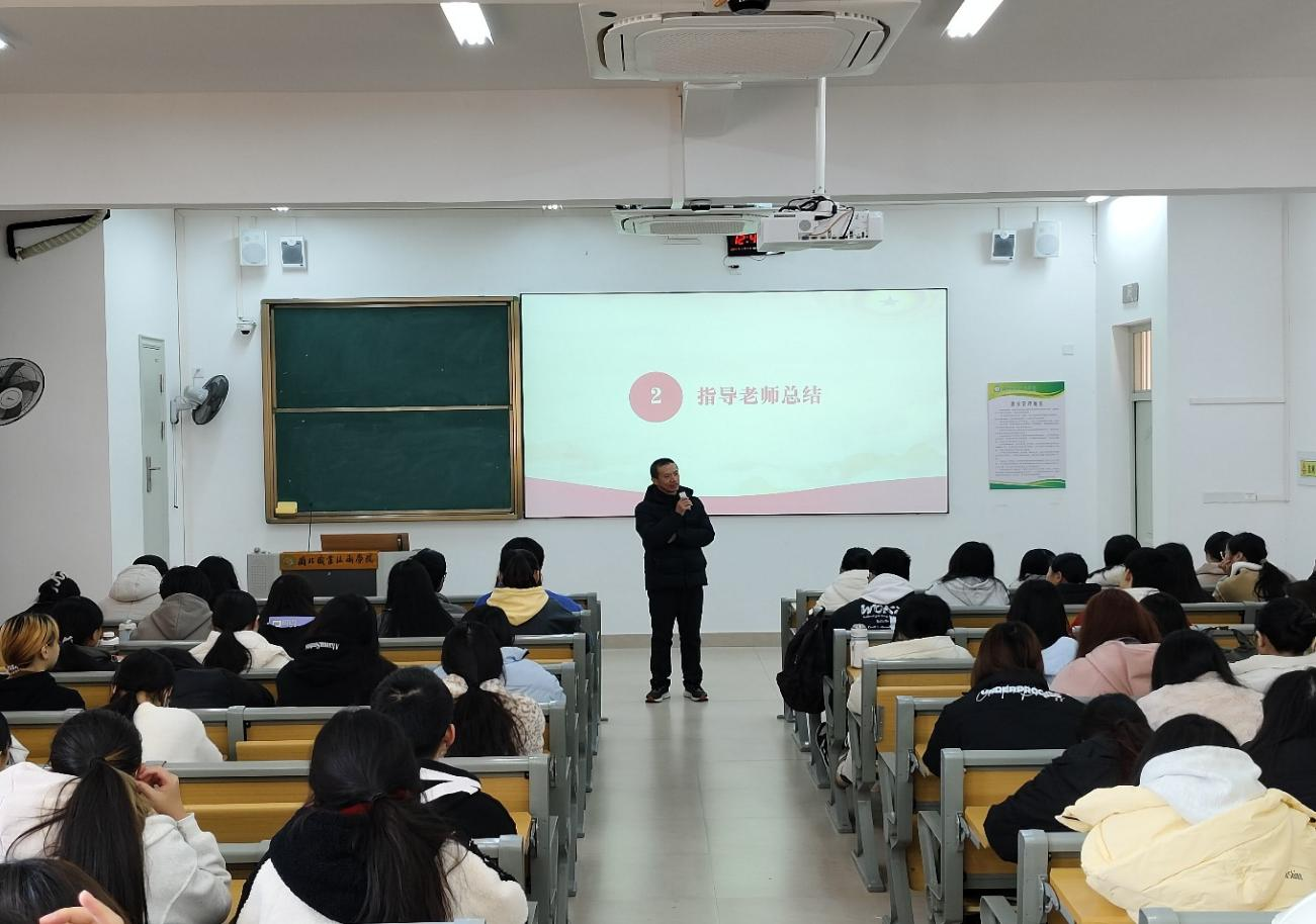 随后🦯,指导老师邱海松老师进行发言。邱老师对本学期举办的活动表示满意和认可✌🏻,并提出了需要改进的地方🦸🏼♀️。他勉励社团成员们能够继续积极参与社团活动𓀘𓀇,勇于展示自己的技能和才艺,积极参加学院举办的比赛。这不仅能够提升自我能力、激励自我成长,还能够增强社团成员们的团队协作能力和团队精神。