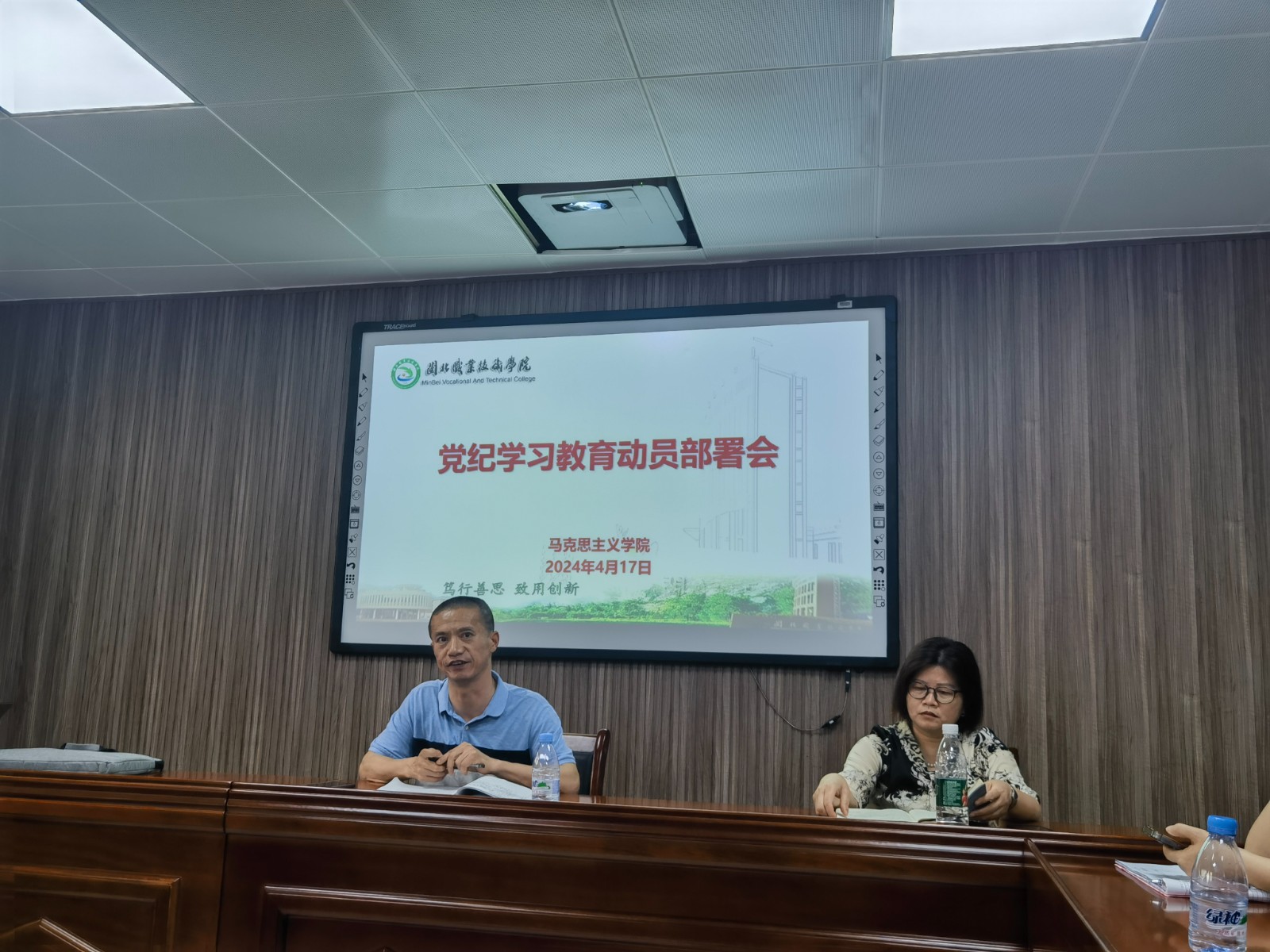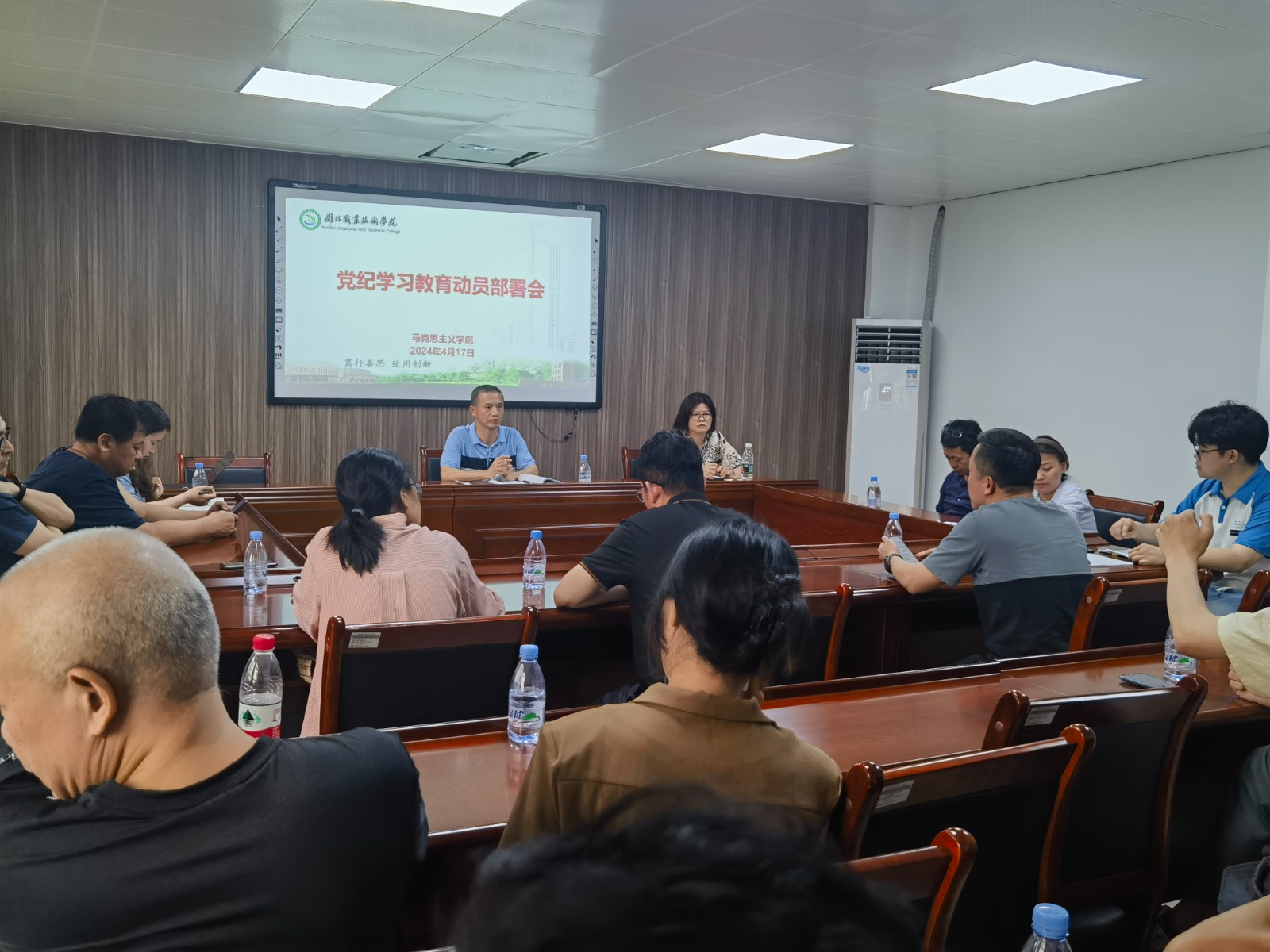 2024年4月17日下午🦕,马克思主义学院在行政楼607会议室召开党纪学习教育动员部署会,全系教职工参加了会议,会议由马克思主义学院院长邱海松同志主持。