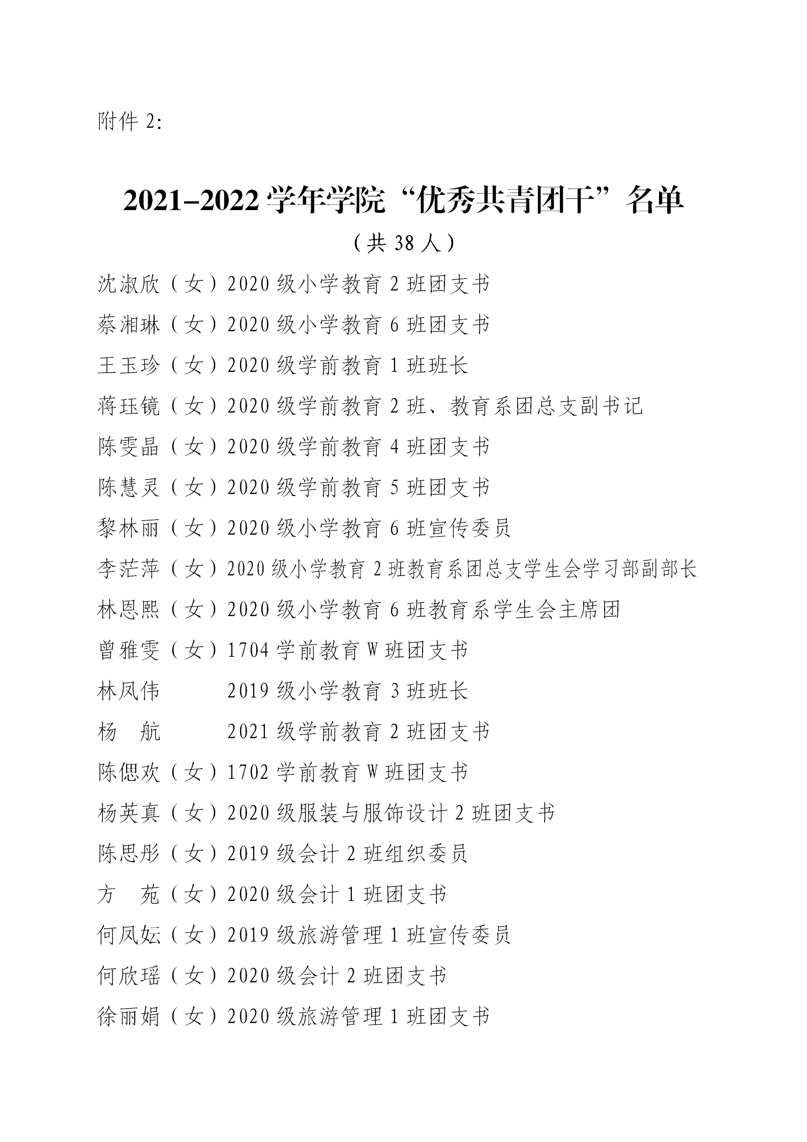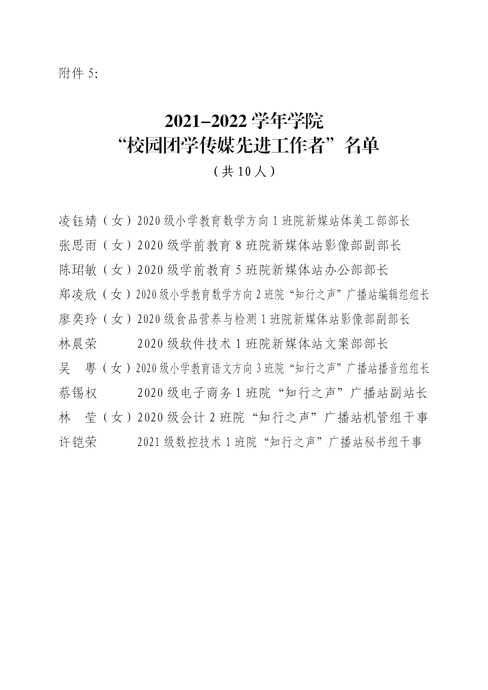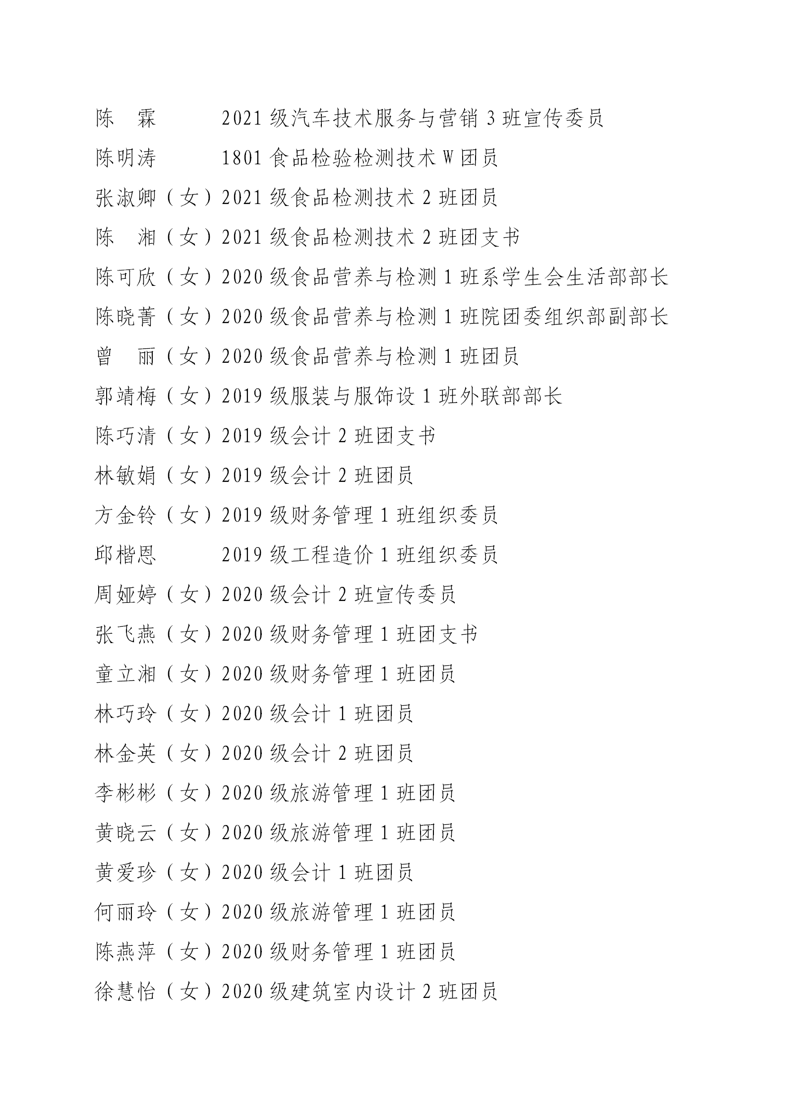 关于表彰2021-2022学年学院共青团先进集体、先进个人的决定(闽北职院团〔2022〕7号)