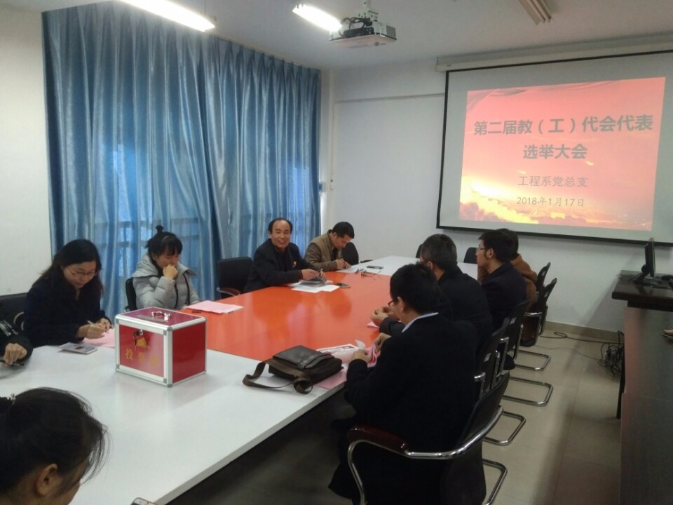 1月17日下午,我系党总支召开了我院第二届教(工)代会代表选举大会,会议由常务副书记郑启阶主持。会议将代表名额按规定的比例分配到计算机应用技术教学团队、机械电子教学团队及行政组共3个团队中,各团队按我院选举要求,严格选举程序,顺利选举出姚荣、张金良、胡建辉等23名教师为我院第二届教(工)代会代表。