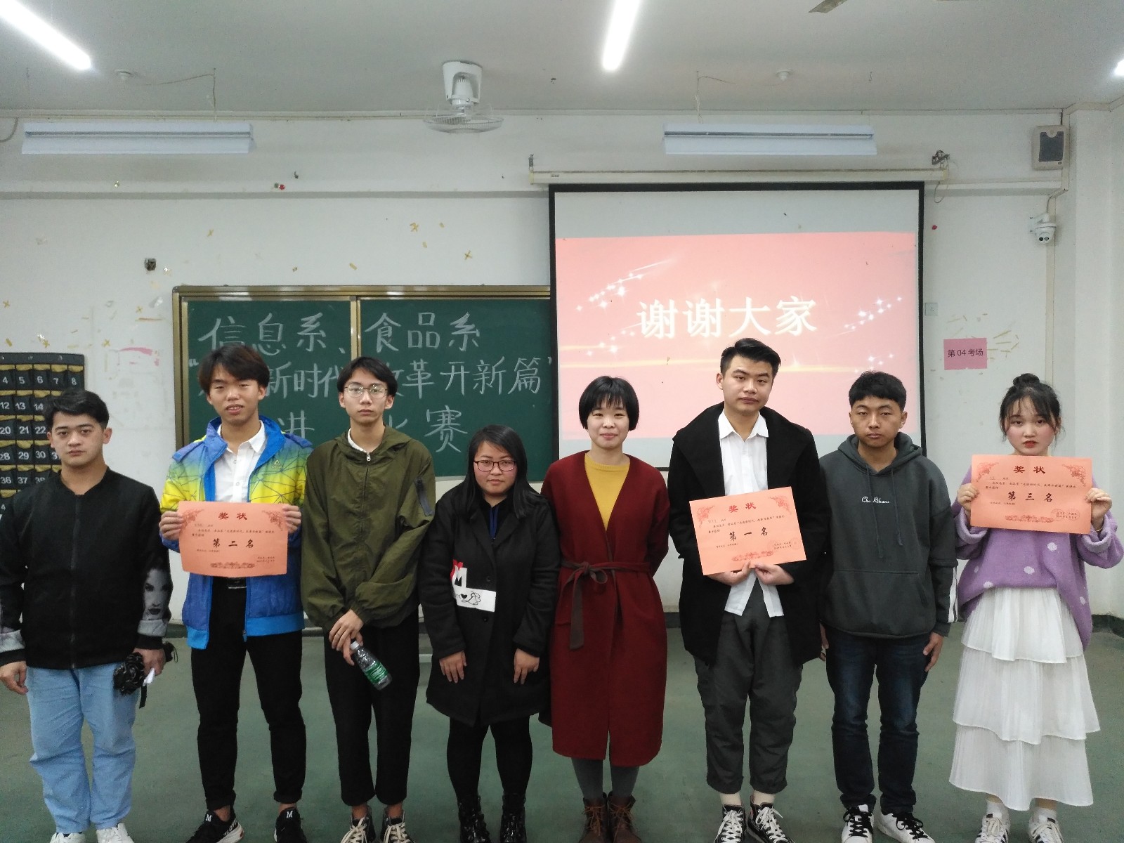 2019年4月3日晚,我系在教学楼106室举办了“走进新时代改革开新篇”主题演讲比赛,系辅导员兰木萍、江晓洁出席演讲比赛并担任评委。