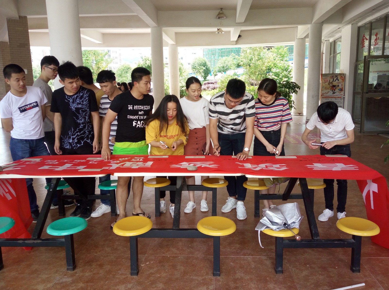 本次系列主题活动主要有:1、组织志愿者开展“发扬志愿者精神,爱护环境”的九峰山保洁活动;2、各班团支部组织召开“学习党的十九大会议精神”主题班会;3、利用互联网新媒体QQ、微信、微博、贴吧等平台,开展弘扬“五四”精神爱国主义教育等内容的宣传;4、开展“学思践悟十九大,青春筑梦献中华”横幅签名活动。
