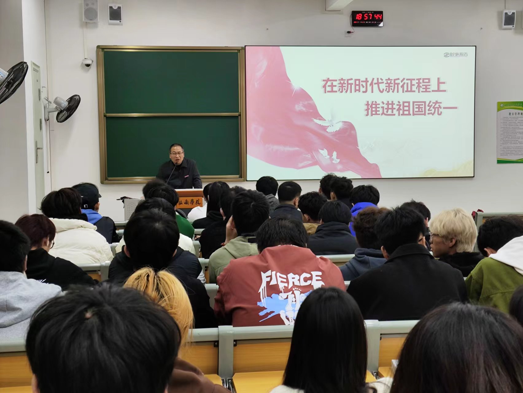 课堂上,郑副院长用精美的课件、详实的史料、平实的语言、生动的事例紧紧围绕“接续奋斗的光辉历程”、“不可阻挡的统一大势”、“与时俱进的行动纲领”等三个方面主题对两岸关系的昨天、今天和明天进行了总结和展望,深刻阐释台海形势的时与势,坚定共创祖国统一、民族复兴伟业的信心和决心。勉励同学们坚定理想信念,励志发奋图强,练就过硬本领,自觉将小我融入大我,将个人奋斗融入国家事业,为中华民族伟大复兴的中国梦贡献青春力量。