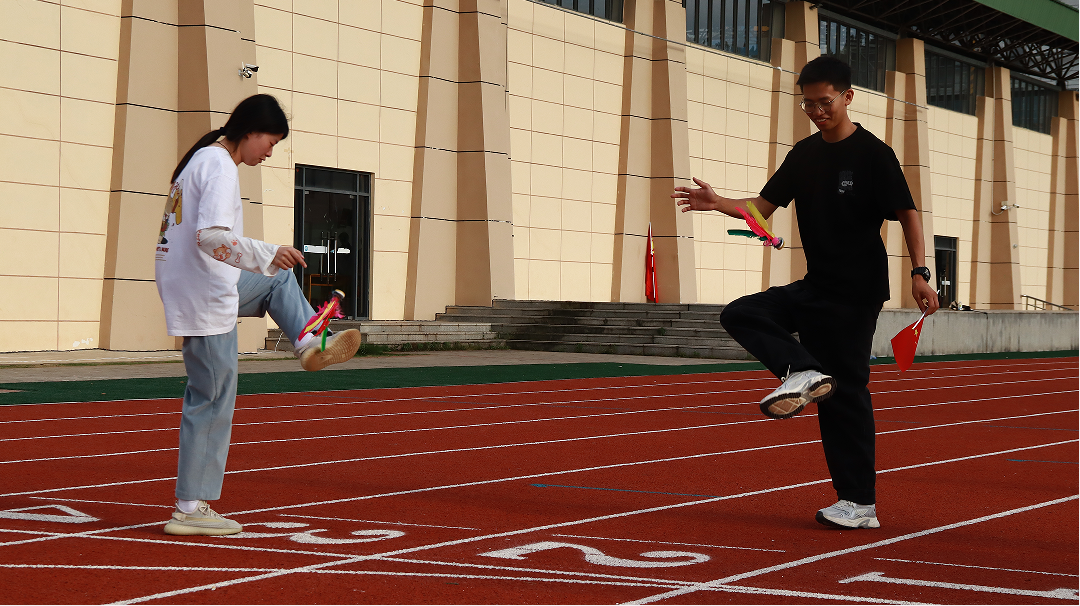 我系于5月4日开展“燃星星之火,传五四精神”主题活动,此次活动的主要内容为趣味接力跑,每队由4名同学组成,共有8队。负责第一棒、第二棒、第三棒的同学需要分别先完成踢20个毽子、跳绳104次、党团史知识答题连续答对3题方可开跑,跳绳次数的设置是为了纪念“五四运动104周年”,最后用时最少的队伍胜出。