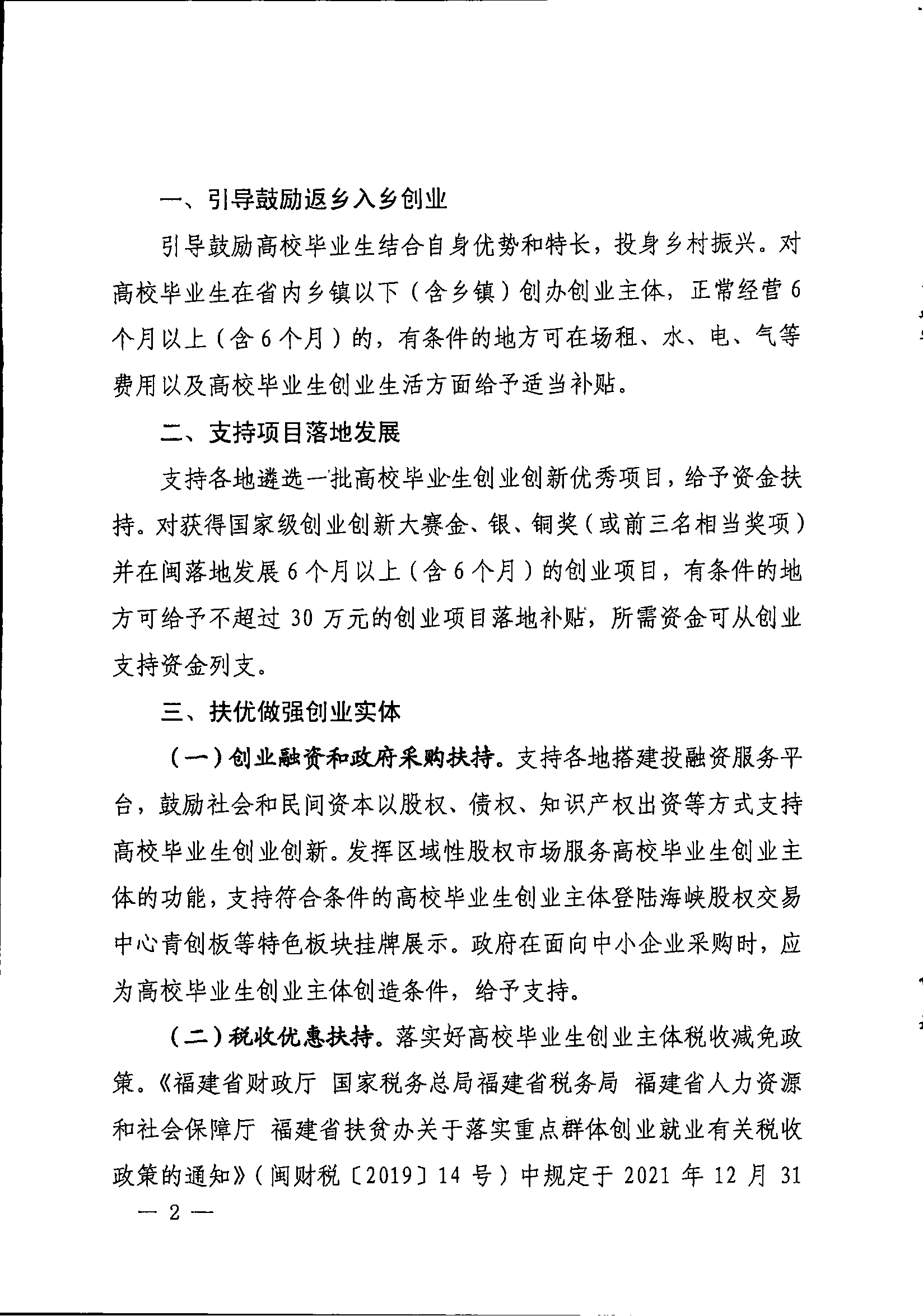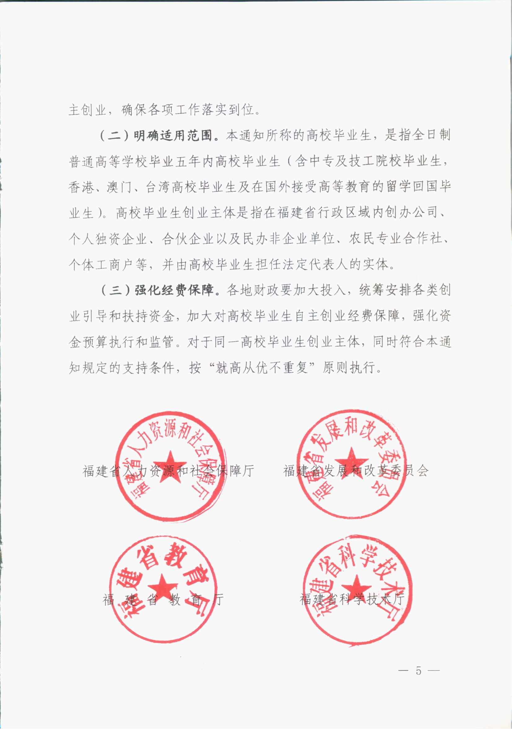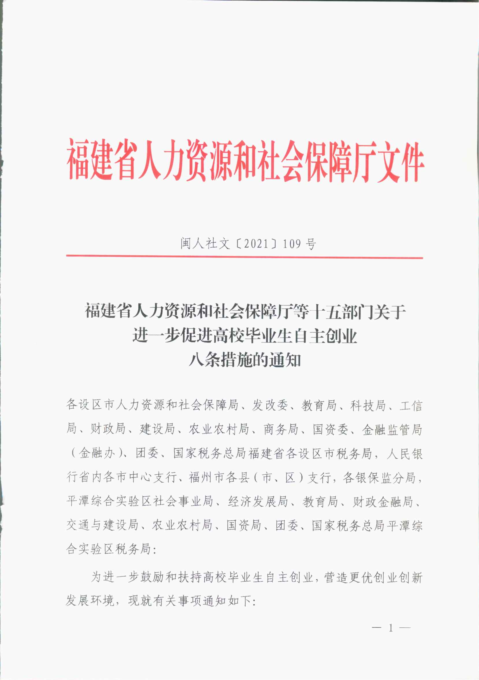 省上文件 | 福建省人力资源和社会保障厅等十五部门关于进一步促进高校毕业生自主创业八条措施的通知