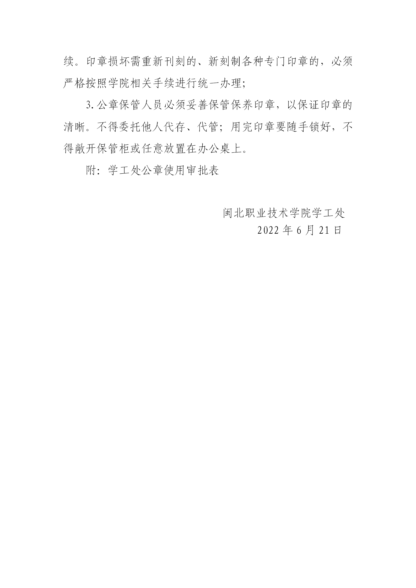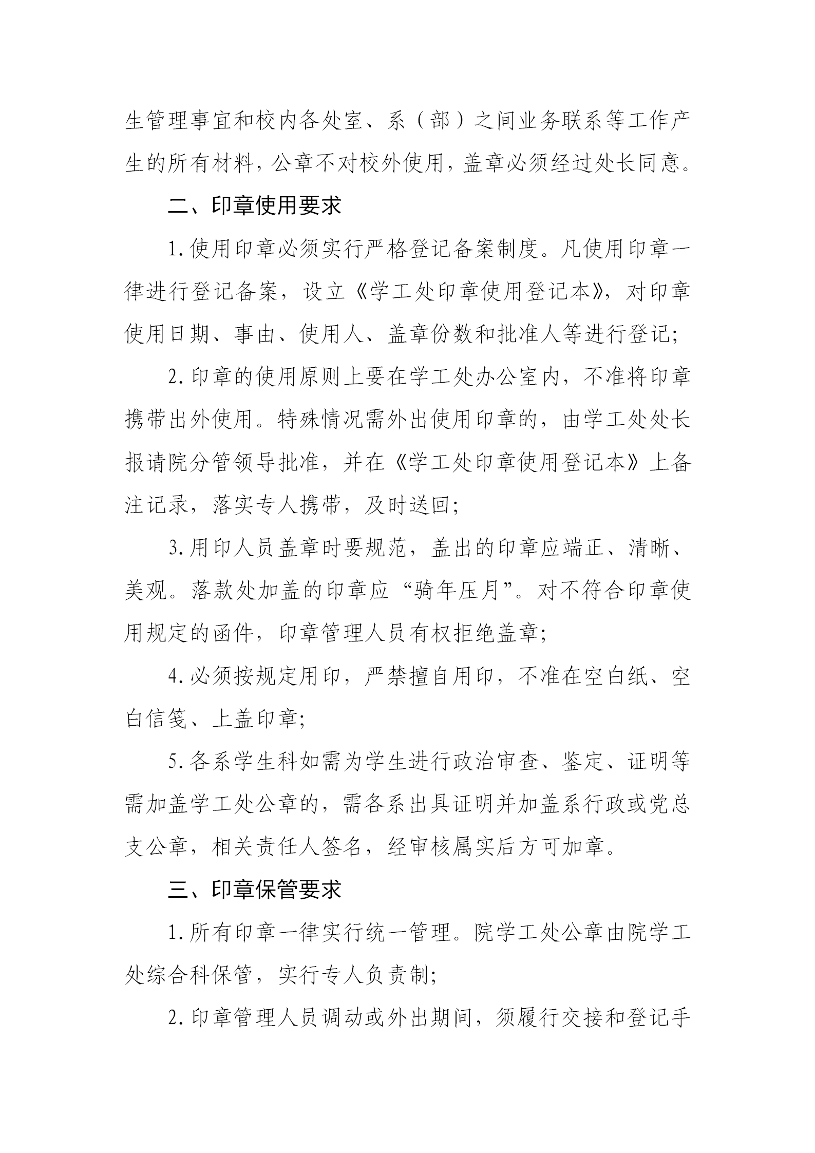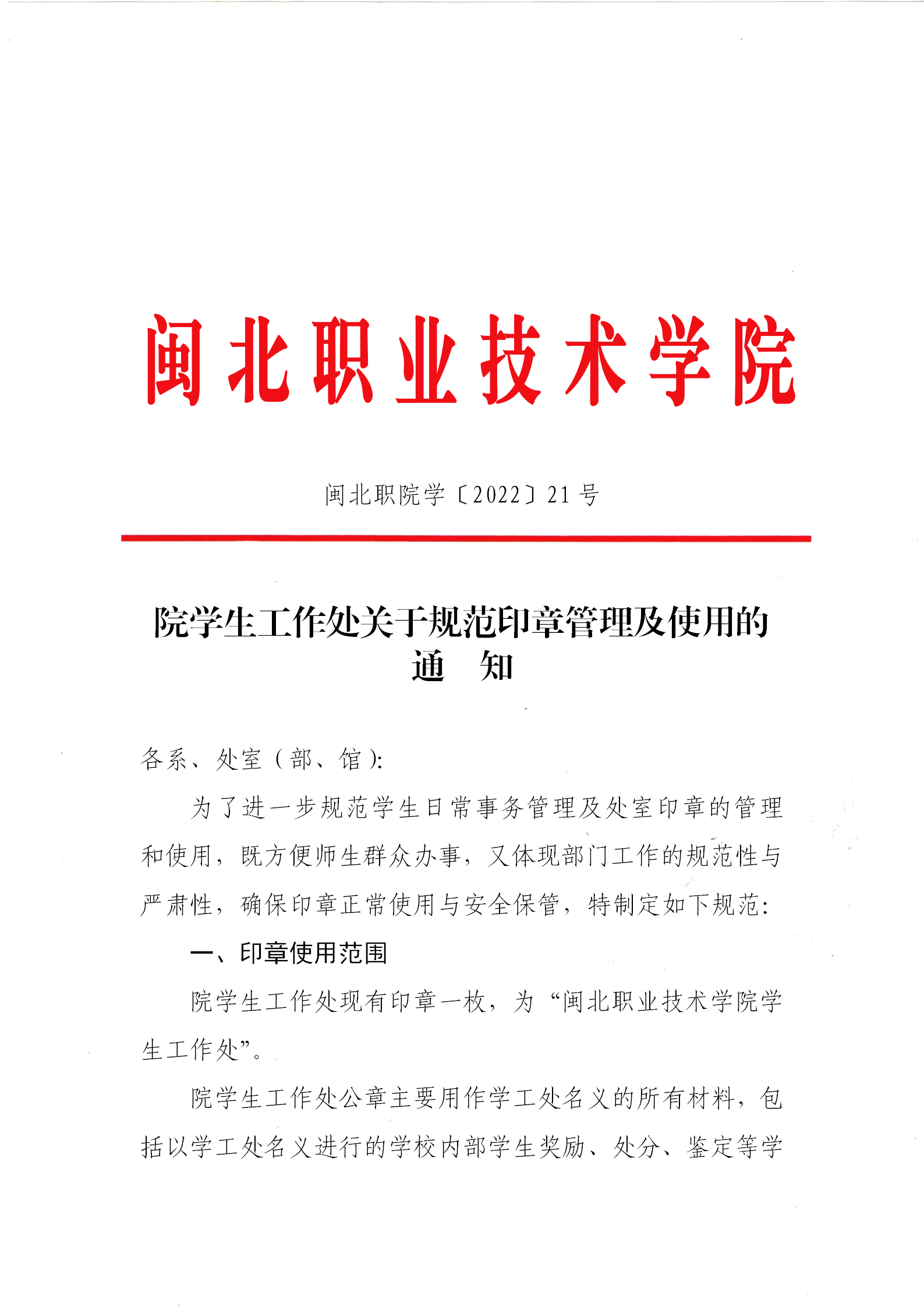院学生工作处关于规范印章管理及使用的通知