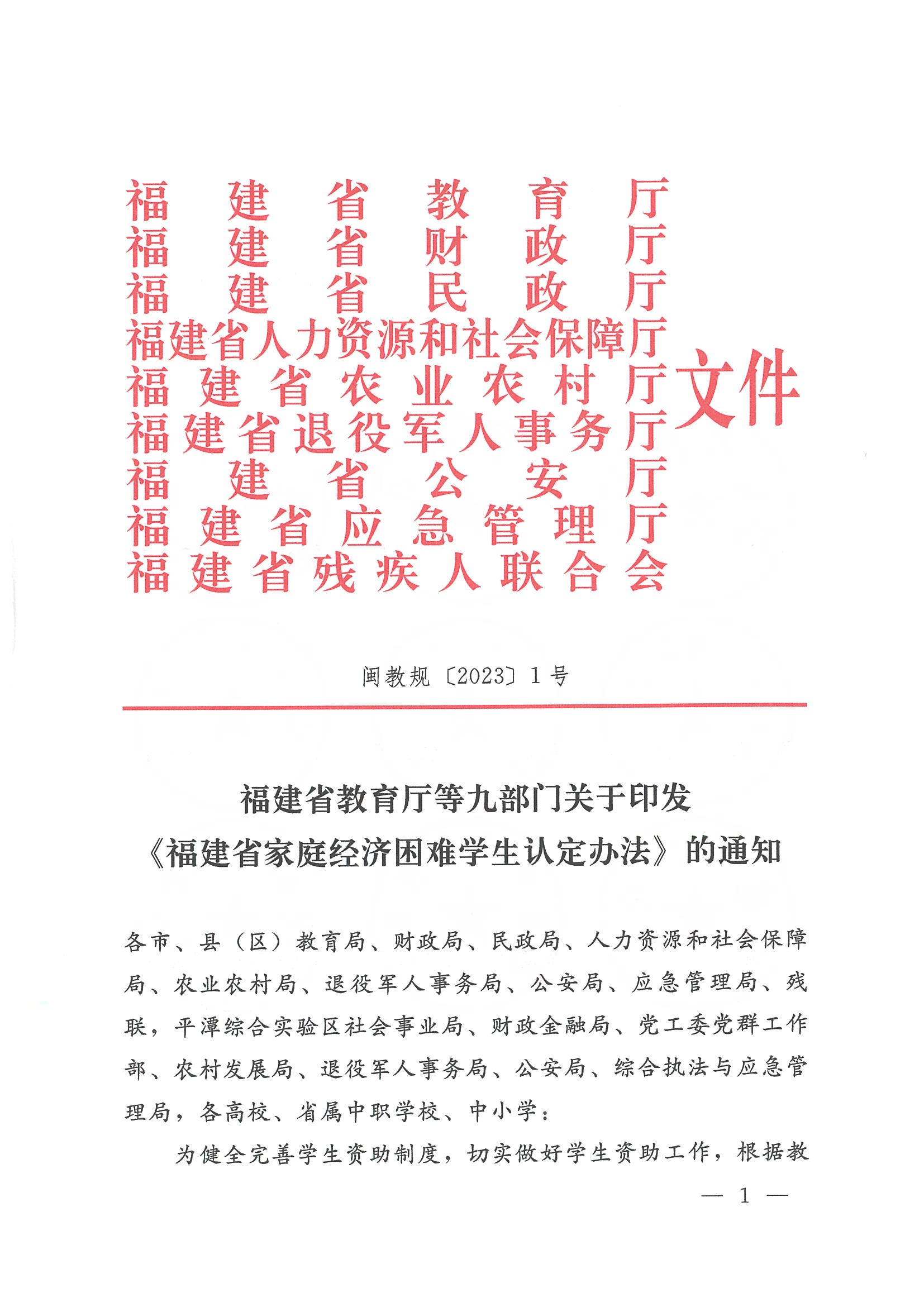 福建省家庭经济困难学生认定办法