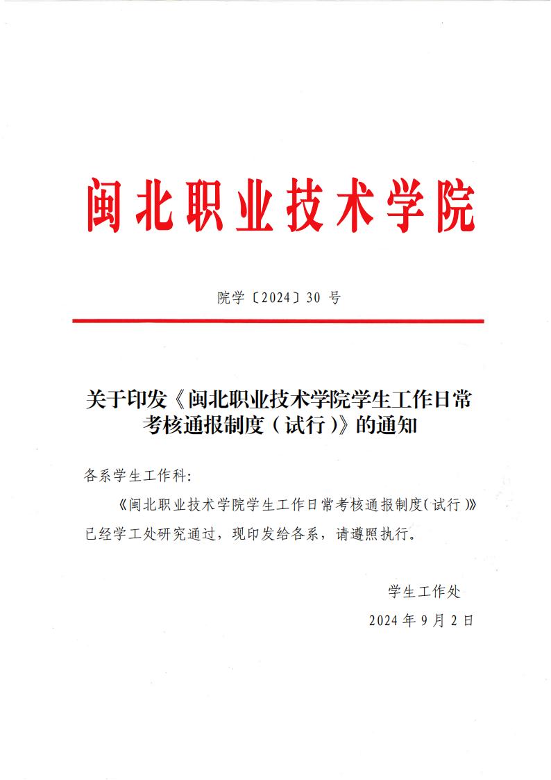 院学〔2024〕30 号 关于印发《彩神学生工作日常考核通报制度(试行)》的通知