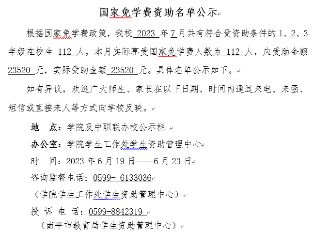 2023年春季学期7月彩神中职国家免学费 学生异动公示名单