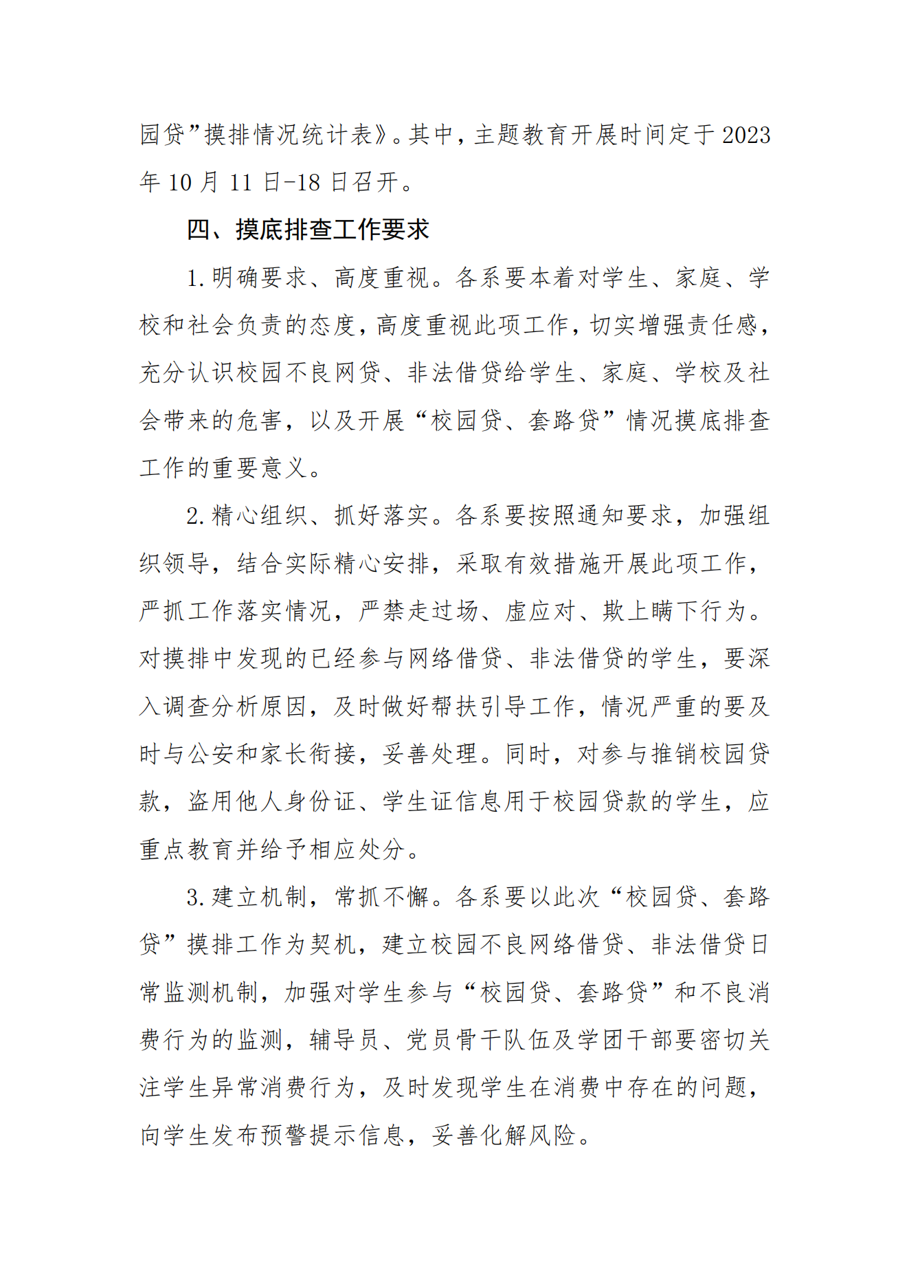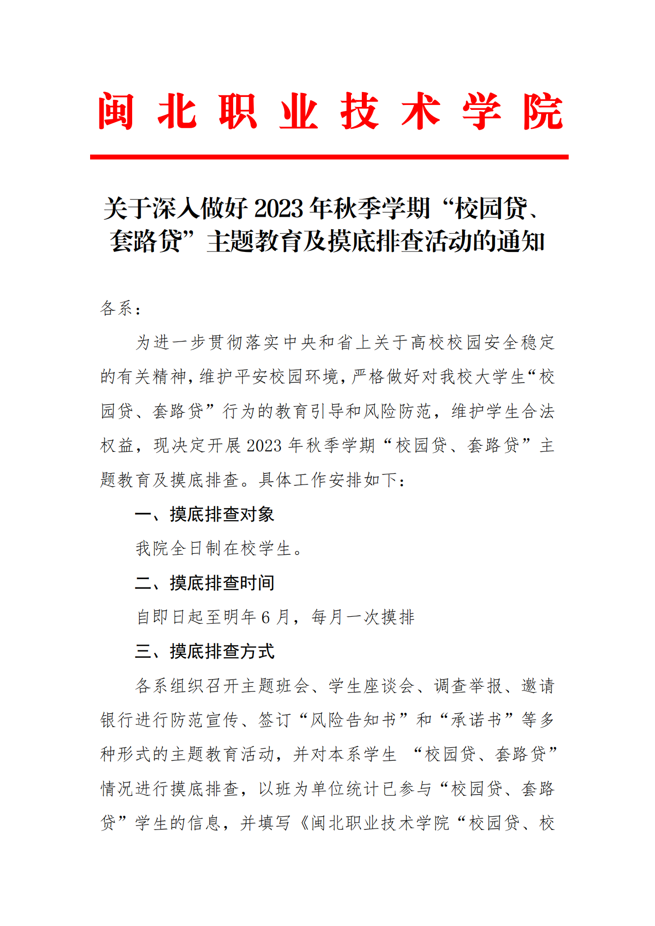 关于深入做好 2023年秋季学期“校园贷、 套路贷”主题教育及摸底排查活动的通知