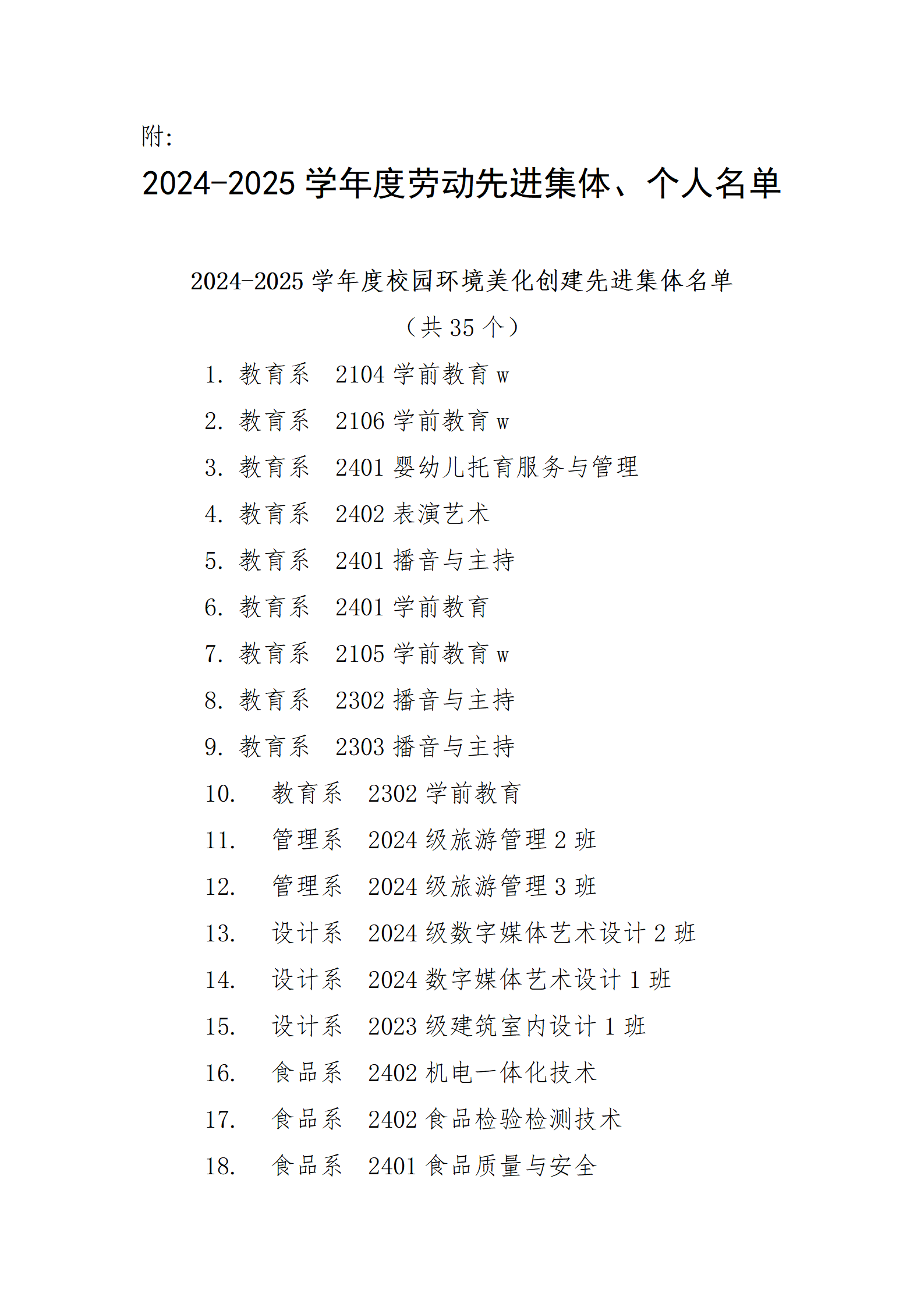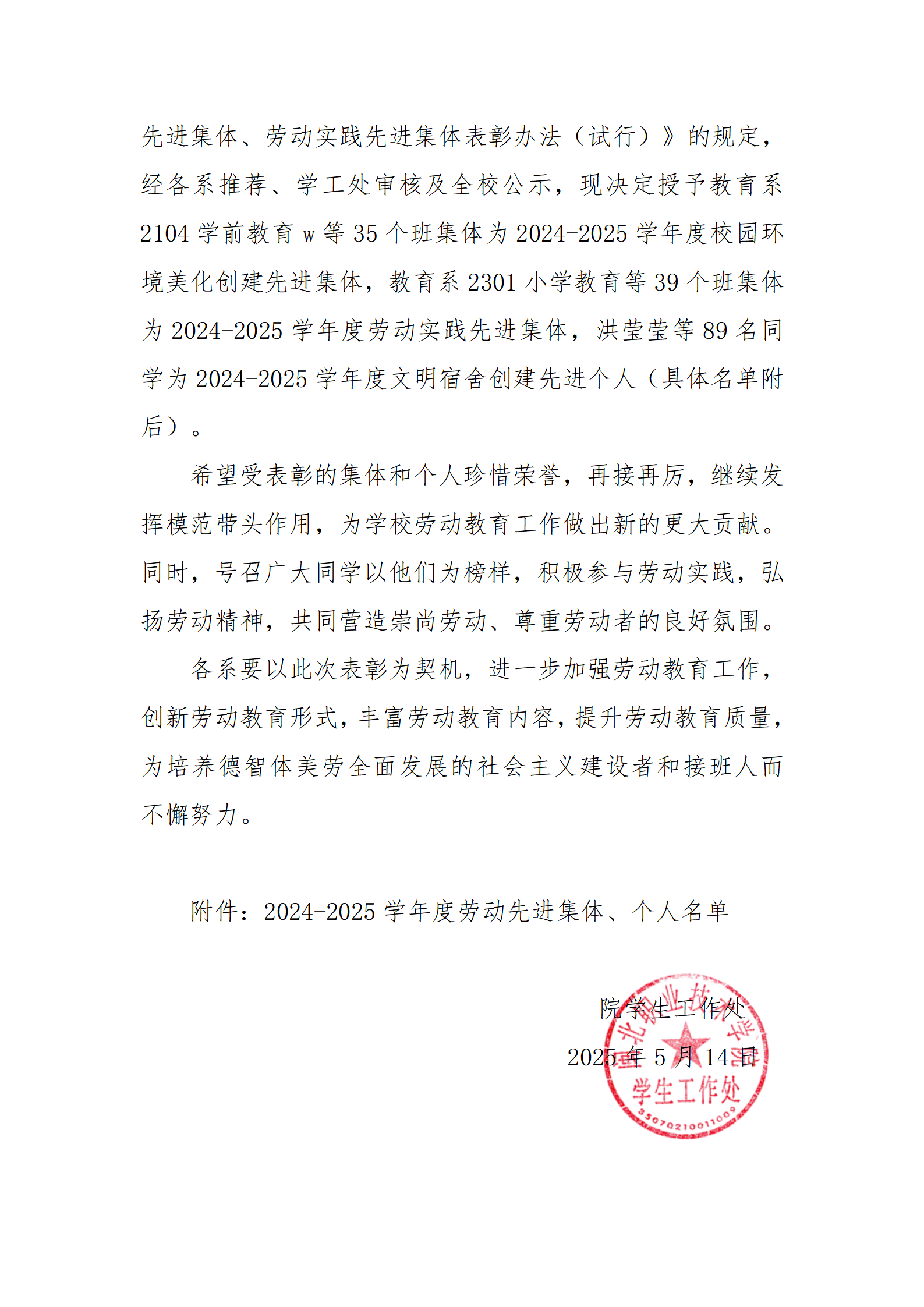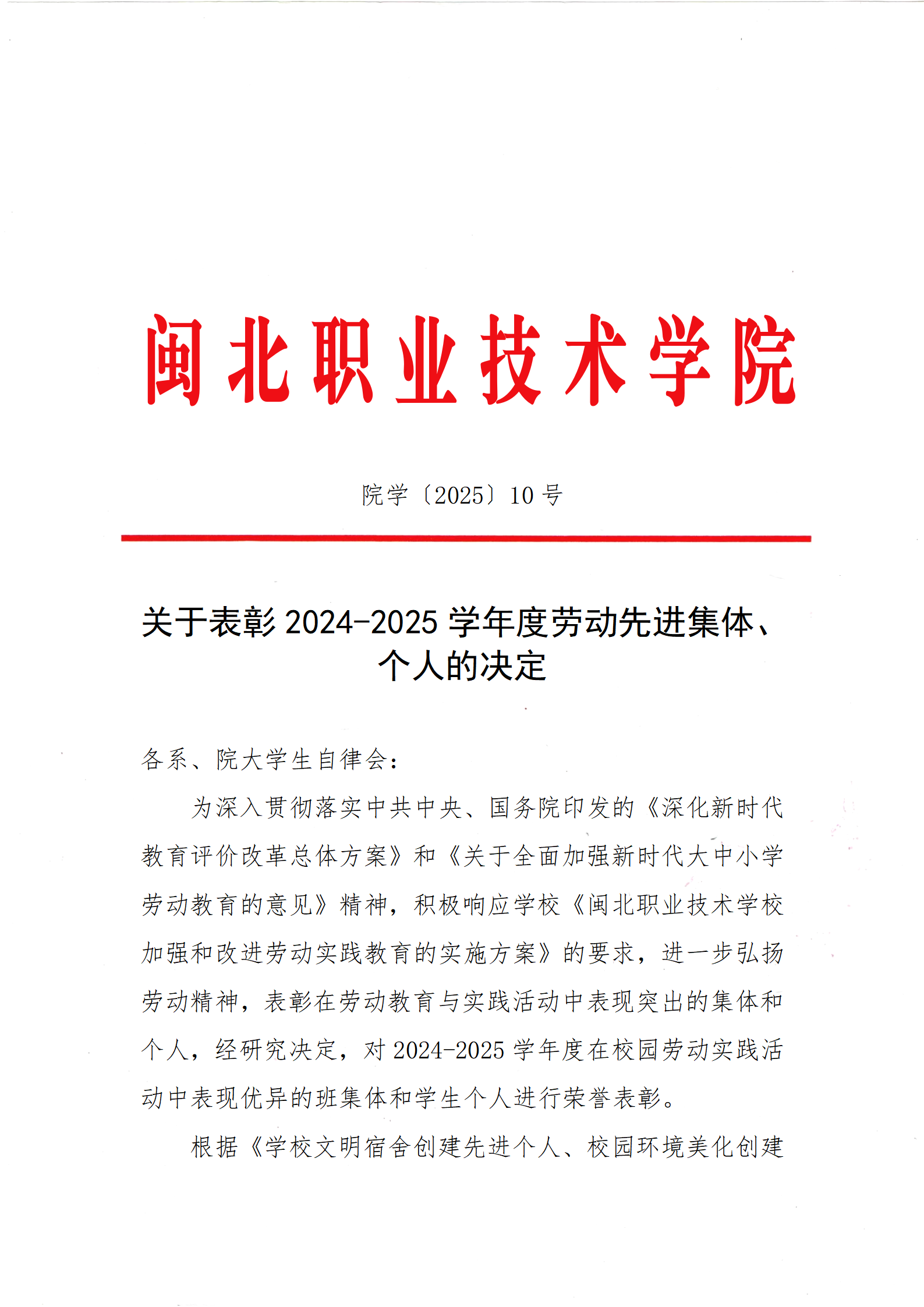 关于表彰2024-2025学年度劳动先进集体、个人的决定