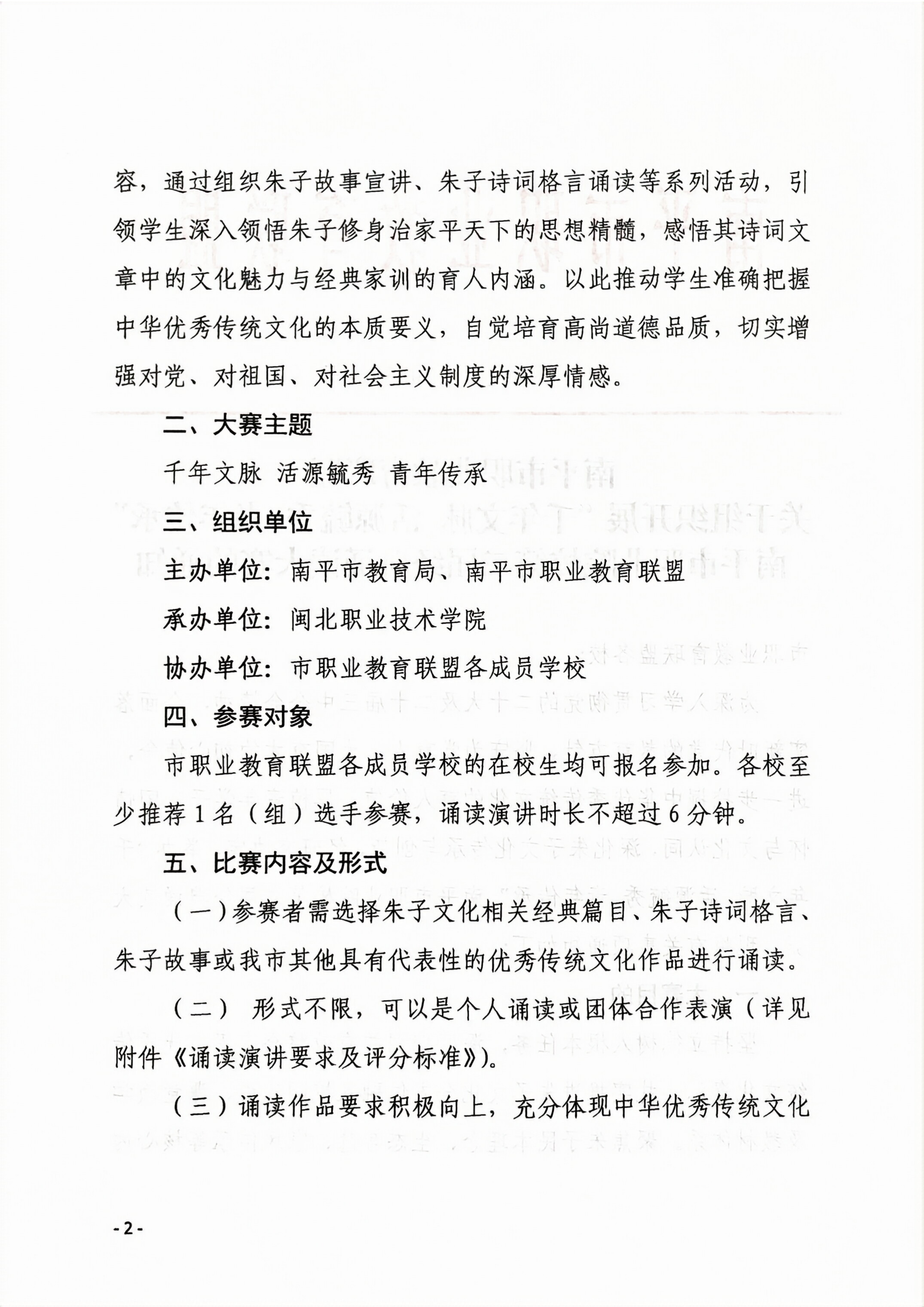 关于组织开展“千年文脉 活源毓秀 青年传承”南平市职业院校第二届经典诵读大赛的通知