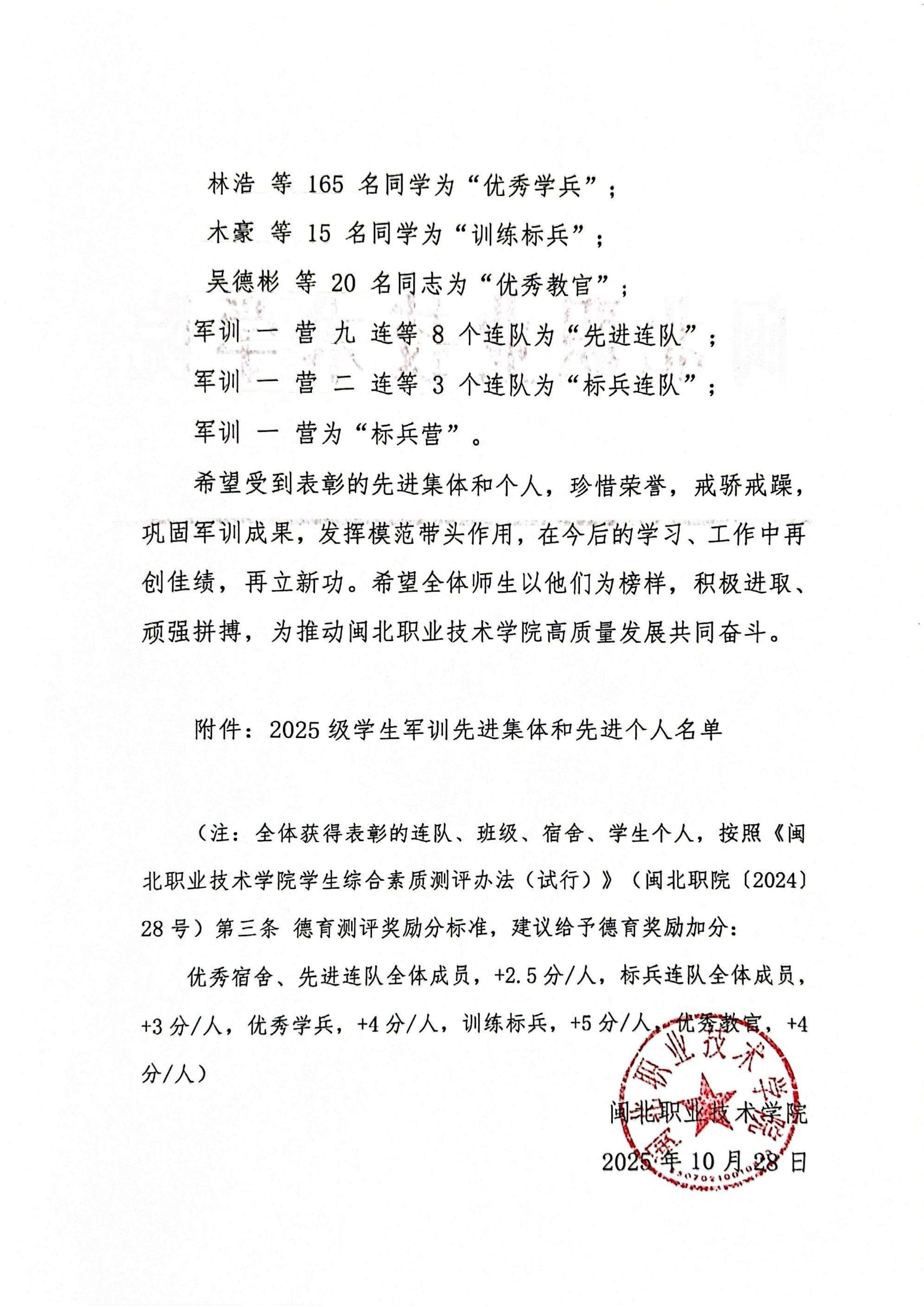 彩神关于表彰2025级新生军训先进集体和先进个人的决定