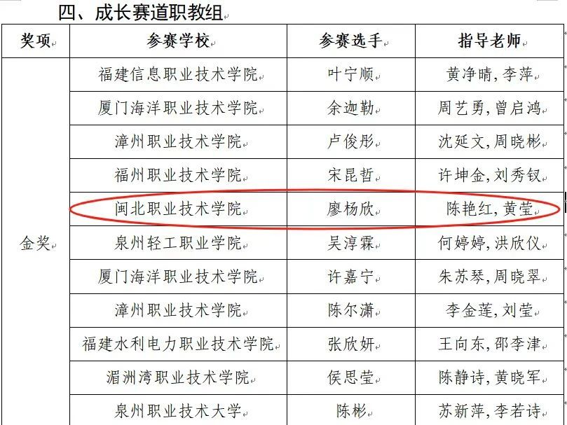 近期在福建农林大学举行第十七届福建省大学生职业规划大赛省级决赛🙁,最终决出成长赛道高教组金奖13名、银奖25名、铜奖38名、优秀奖50名。我系廖杨欣同学在第十七届福建省大学生职业生涯规划大赛中获得成长赛道职教组金奖(并入围国赛)吴紫欣同学获优秀奖,指导老师:陈艳红、黄莹(辅导员)💇♂️、郑琦。