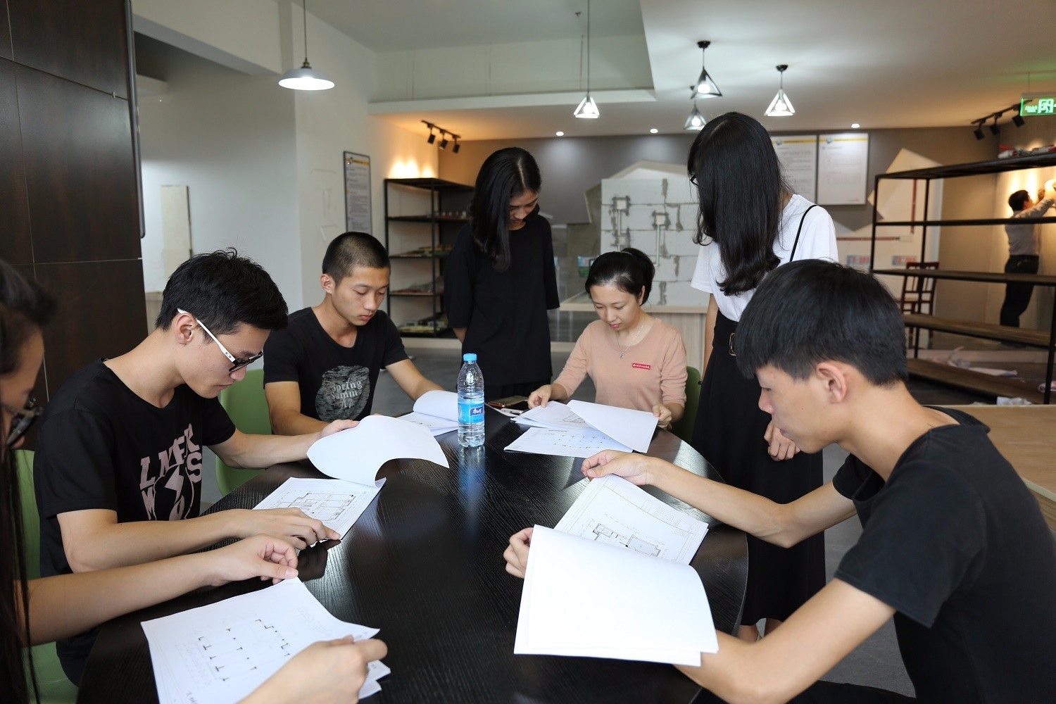 其中,设计工作室是与南平洛克装饰设计公司共建的设计工作室,项目化教学的核心课程中使用项目多数来自设计工作室,我系建筑室内设计专业学生在设计工作室直接参与企业真实设计项目,在企业的设计师的指导下进行进行项目方案设计、施工图绘制和效果图绘制。
