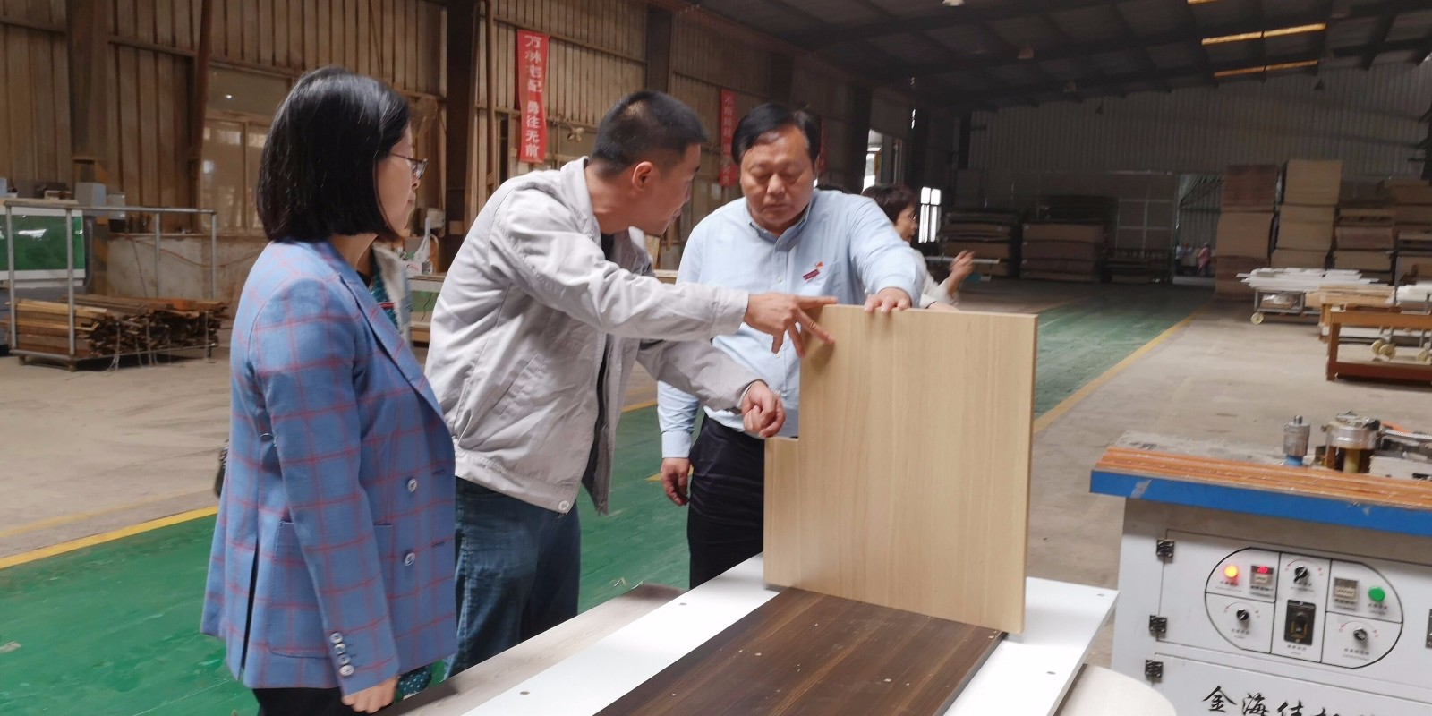 2020年10月19日,院党委书记谢友平带领设计系陈婷主任和建筑室内设计专业骨干教师赴建瓯市万木林木业集团制造中心进行校企深度合作调研。谢书记一行深入万木林集团生产流程车间、工厂展厅,办公区域、培训中心等现场实地调研。厦门万木林宅配家居制品有限公司董事长张晓露、建瓯市万木林木业集团有限公司总经理吴建明、万林木制品有限公司总经理杨兴群等公司领导详细介绍了企业品牌及发展历程、工厂规模🚶、生产工艺流程🪯、产品质量、营销模式及企业未来市场发展方向等情况。