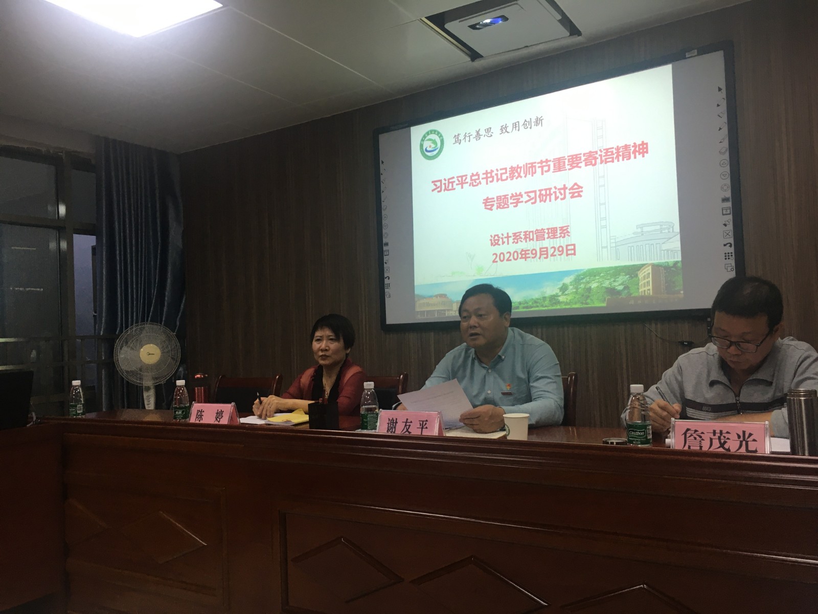 9月29日下午,设计系和管理系在行政楼607室,组织召开学习贯彻习近平总书记教师节重要寄语精神专题研讨会。党总支詹茂光书记主持会议🦁。学院挂点领导、学院党委谢友平书记莅临指导🫑。两系全体党员、教职员工参加了学习研讨会。
