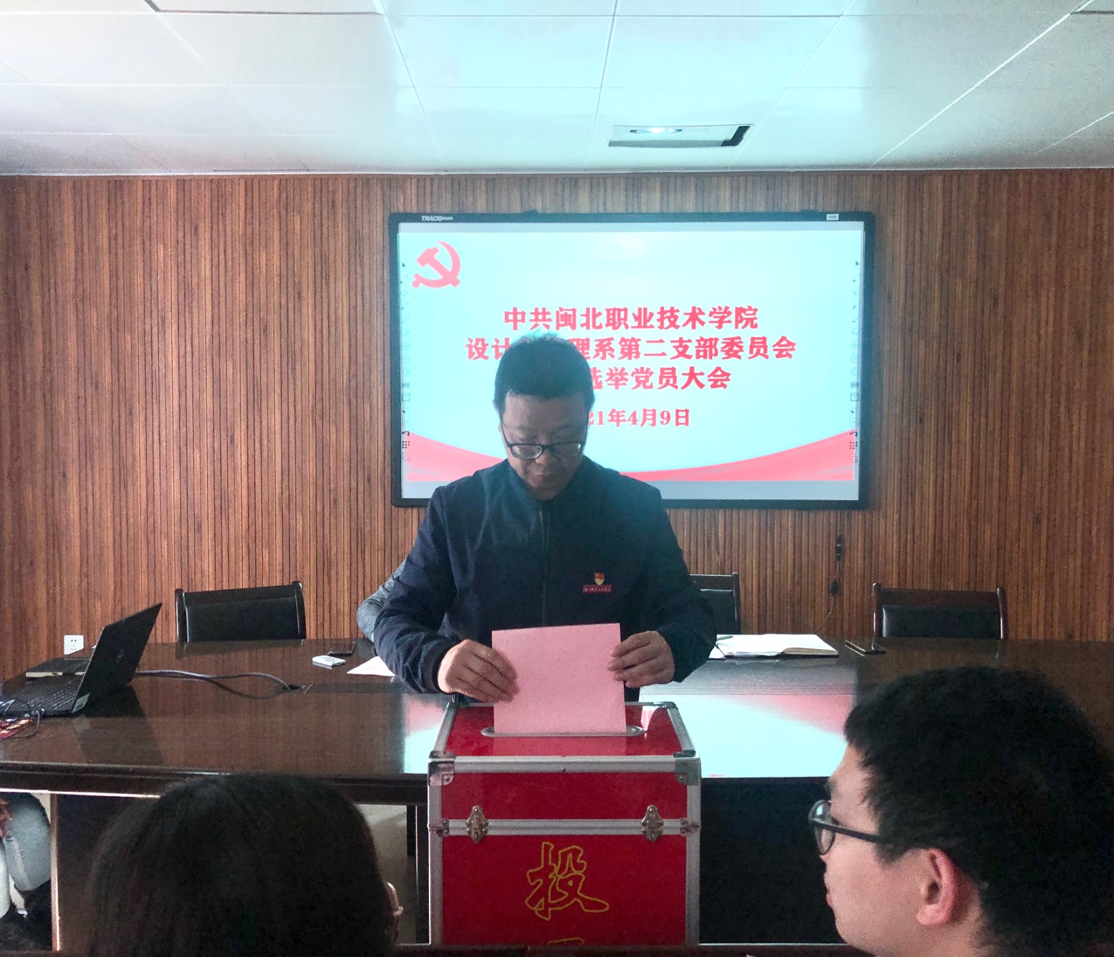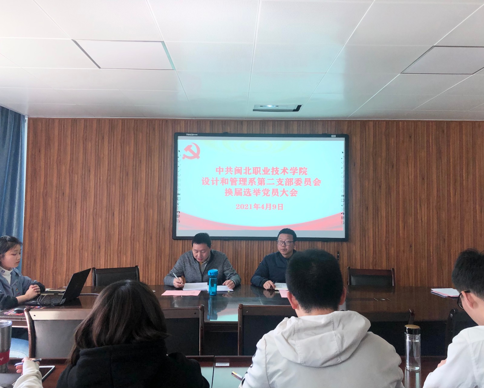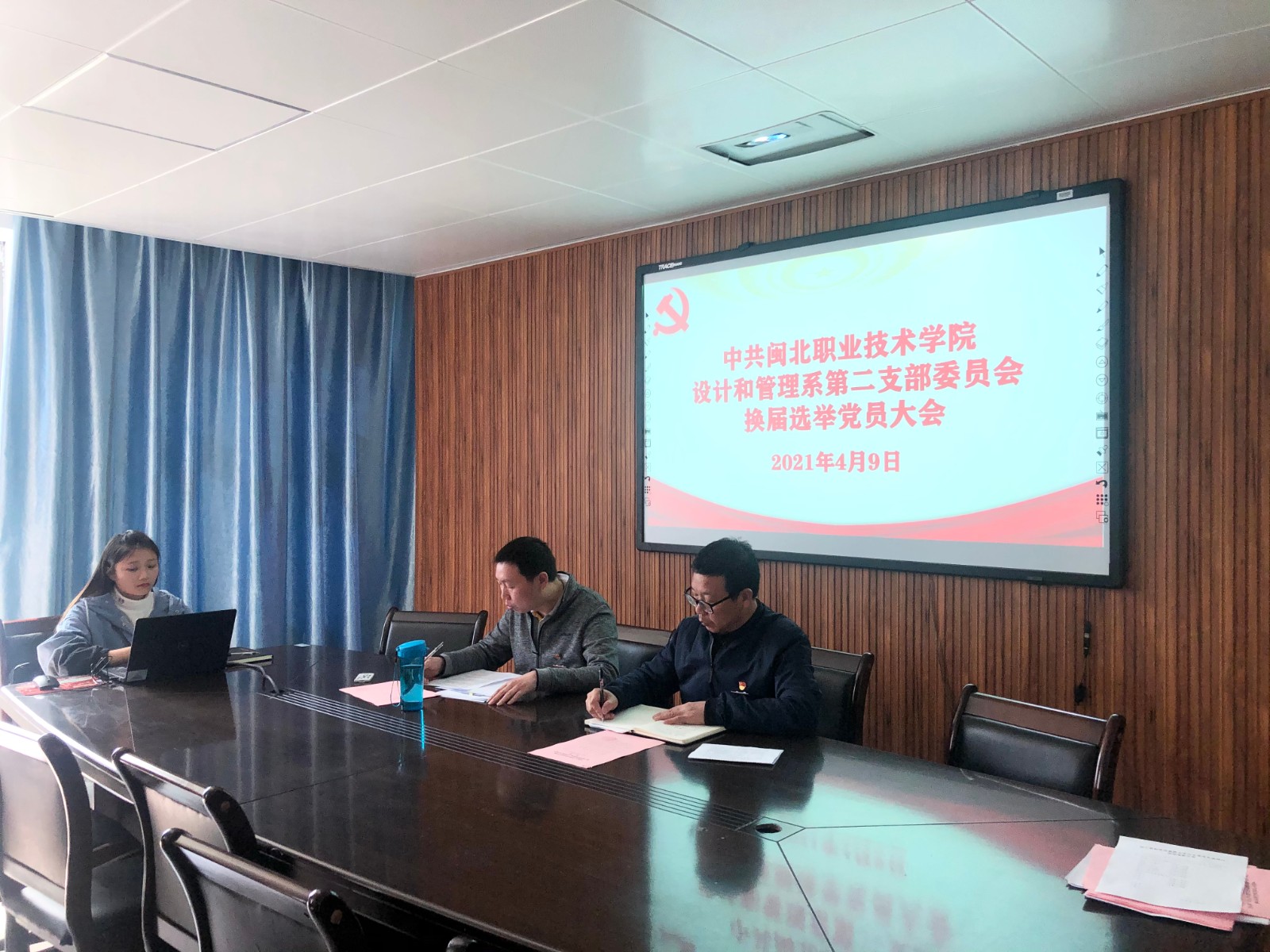 2021年4月9日,设计系和管理系第二党支部换届选举大会在行政楼507会议室隆重召开。第二党支部全体党员参加了本次大会,会议由第二党支部书记吴亮同志主持🛀🏻。