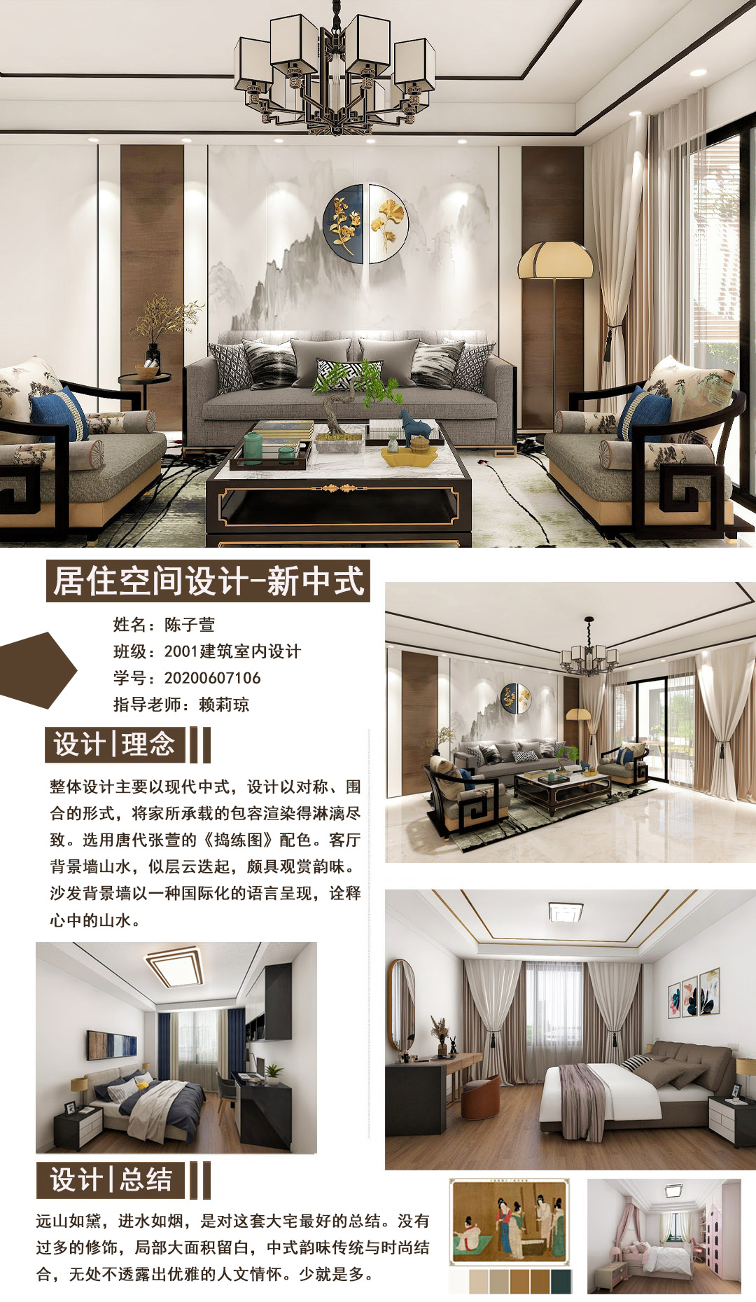 文化是民族发展的力量源泉。文化兴国运兴,文化强民族强🫴🏻。《居住空间设计》课程项目设计,在“喜迎二十大”的新时代背景下,引导学生将中国画色彩提取再设计,打造新中式风格清雅含蓄、端庄典雅的室内设计作品🤦🏿♀️👩👩👧,在设计和创新中培养学生高度的民族自豪感和坚定的文化自信🕡。