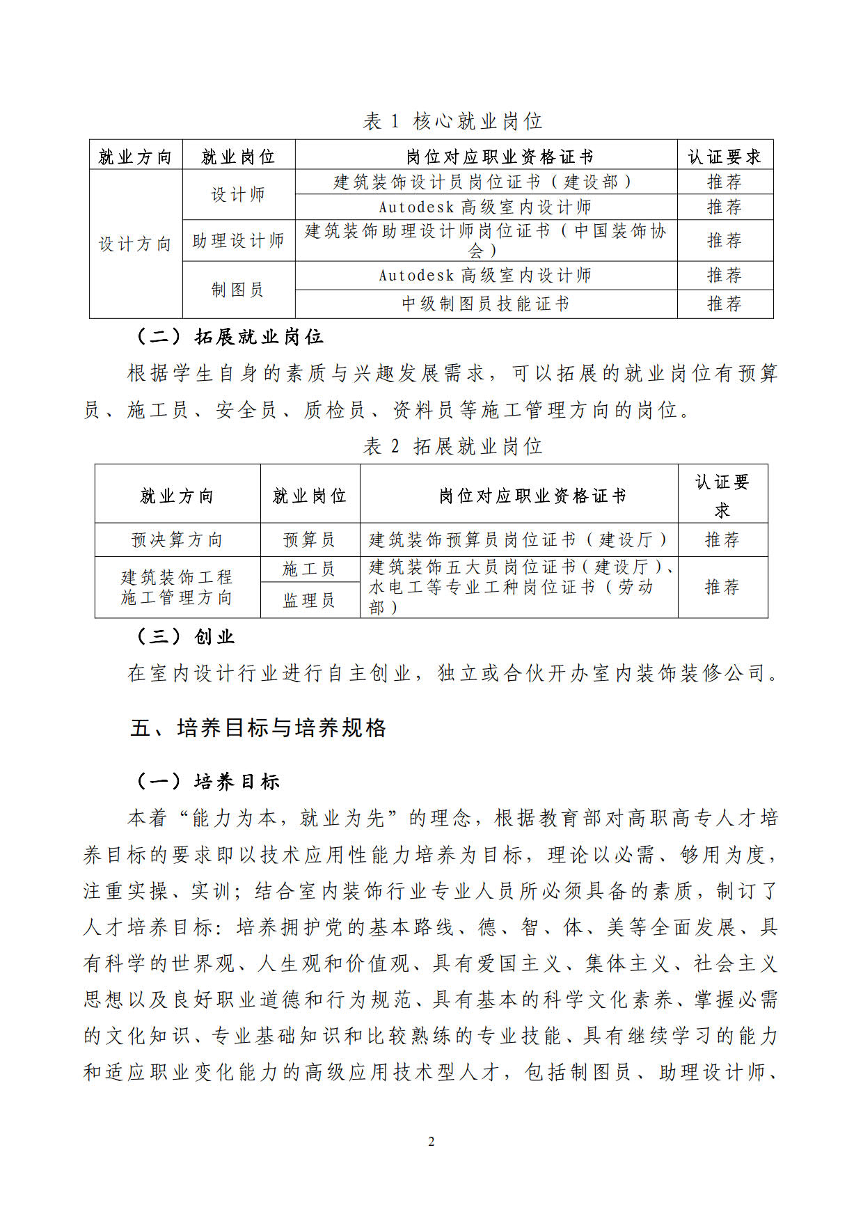 2019级“退役军人”建筑室内设计专业人才培养方案