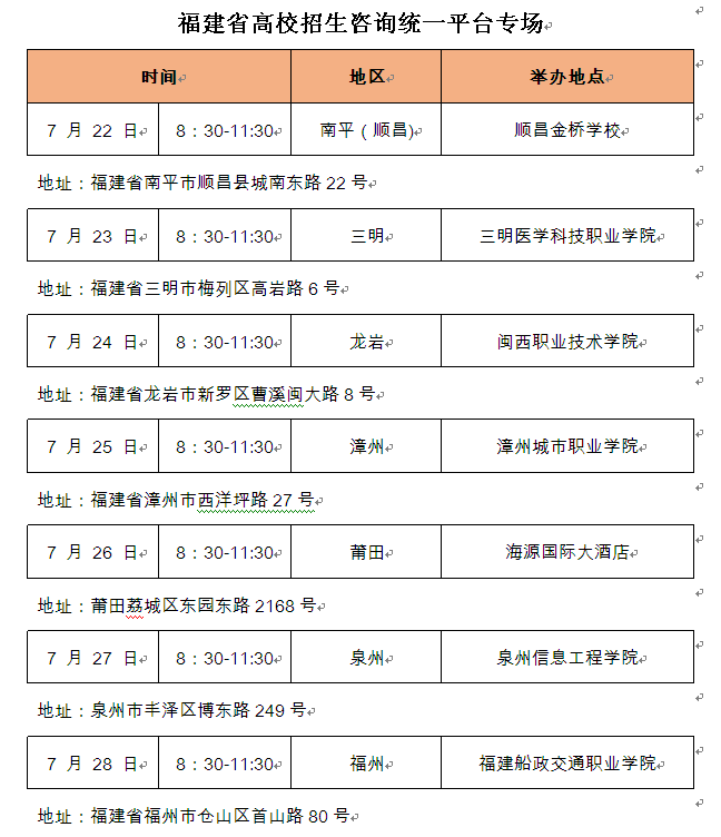 为帮助广大考生深入了解我校办学实力及专业特色、教育教学水平,准确把握2019年福建省招生政策,科学选报专业志愿👉🏿,我院将参加福建省各大媒体于7月下旬在各地市举办的专场咨询活动🫀🫱🏿,与广大考生及家长面对面沟通交流👮🤯,现场指导考生科学合理填报志愿,外地市考生可选择就近到会咨询。咨询会坚持公益性和服务性原则🚲,不向考生🏊🏼♀️、家长和参观者收取任何费用,欢迎考生及家长充分利用面对面的咨询机会向各院校招生老师多了解信息并请互相转告!