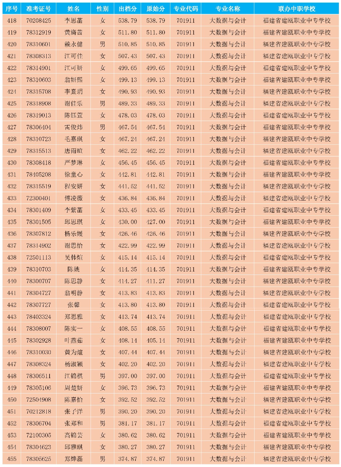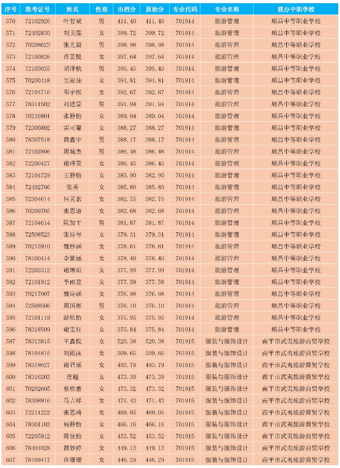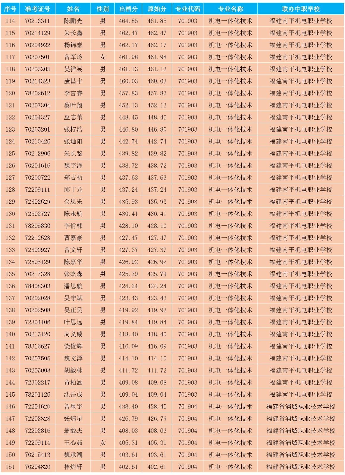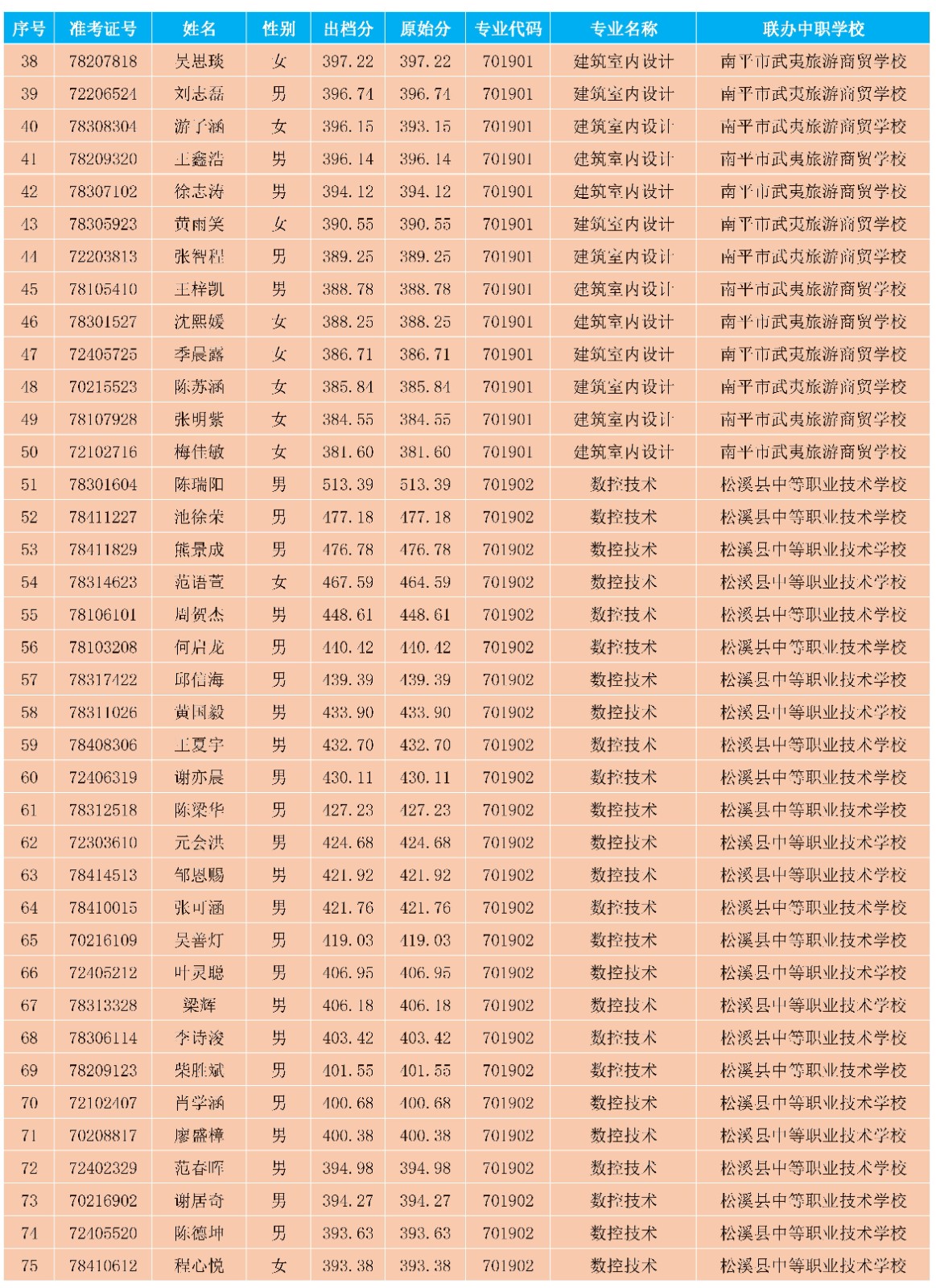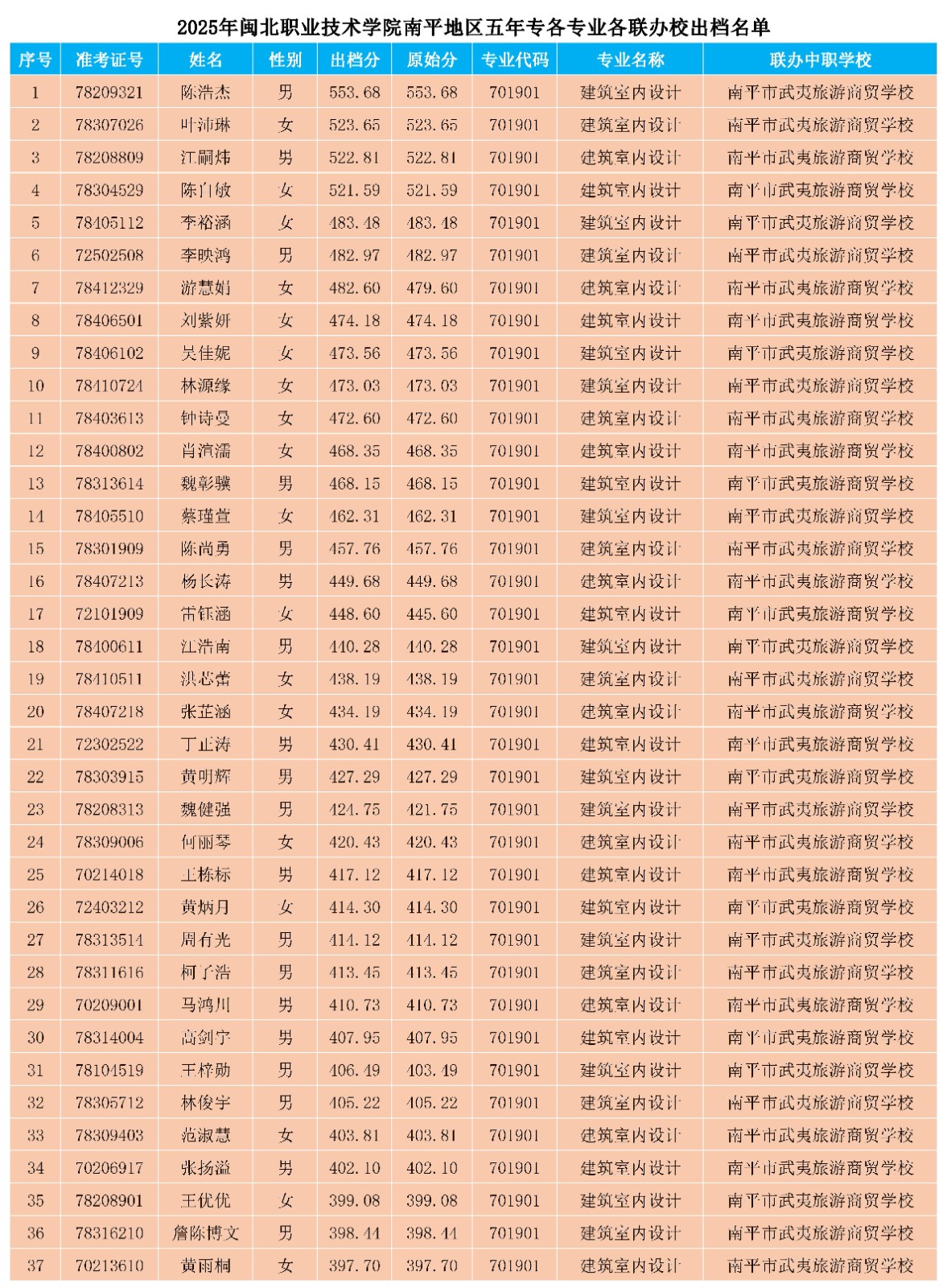 2025年彩神南平地区五年专各专业各联办校常规志愿出档名单
