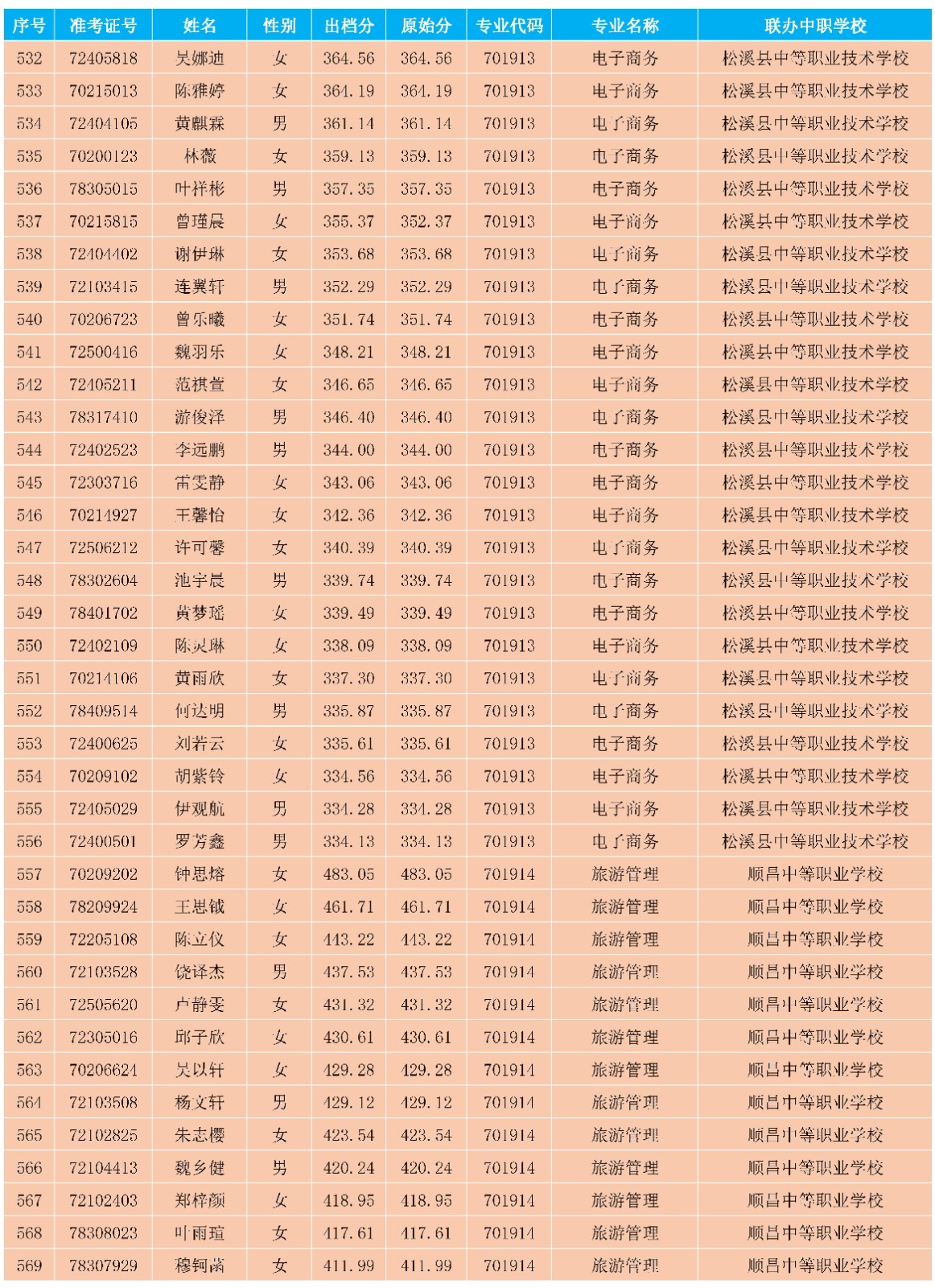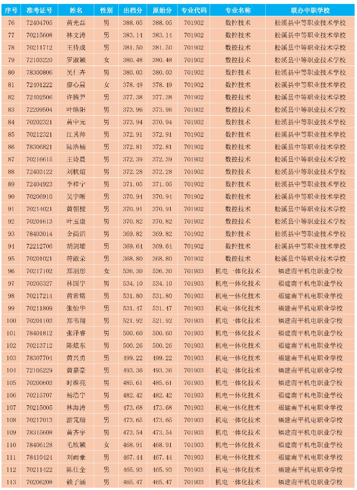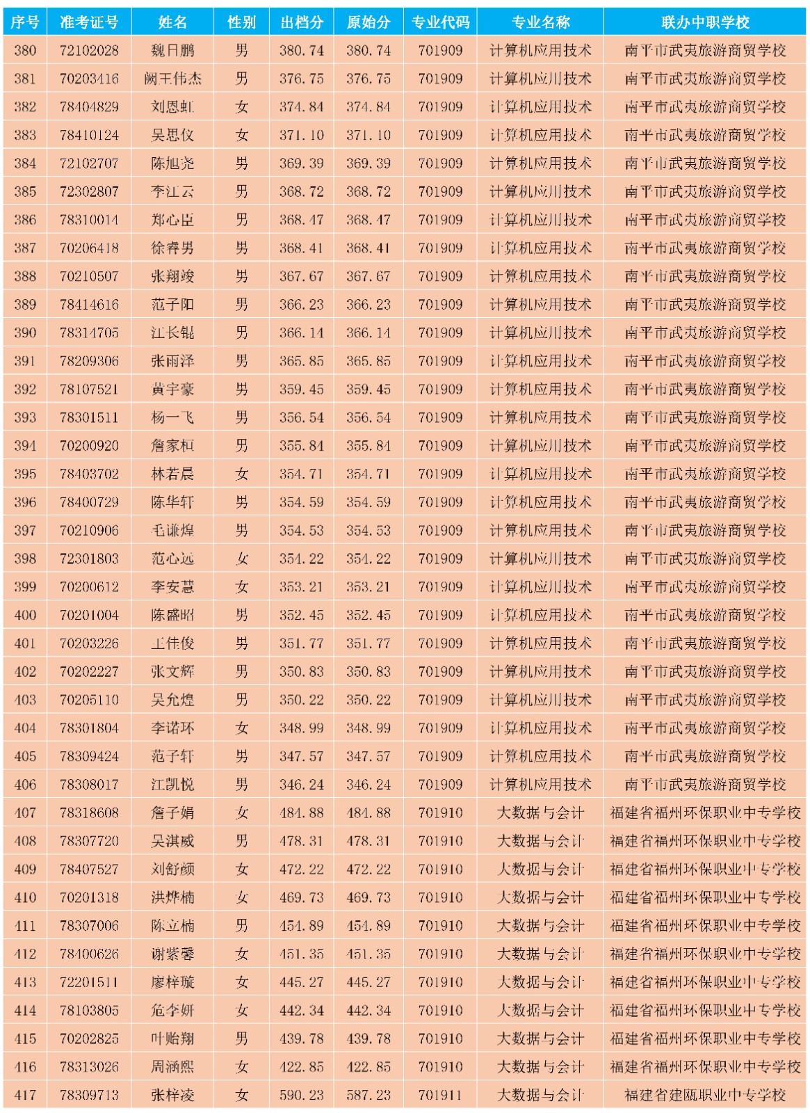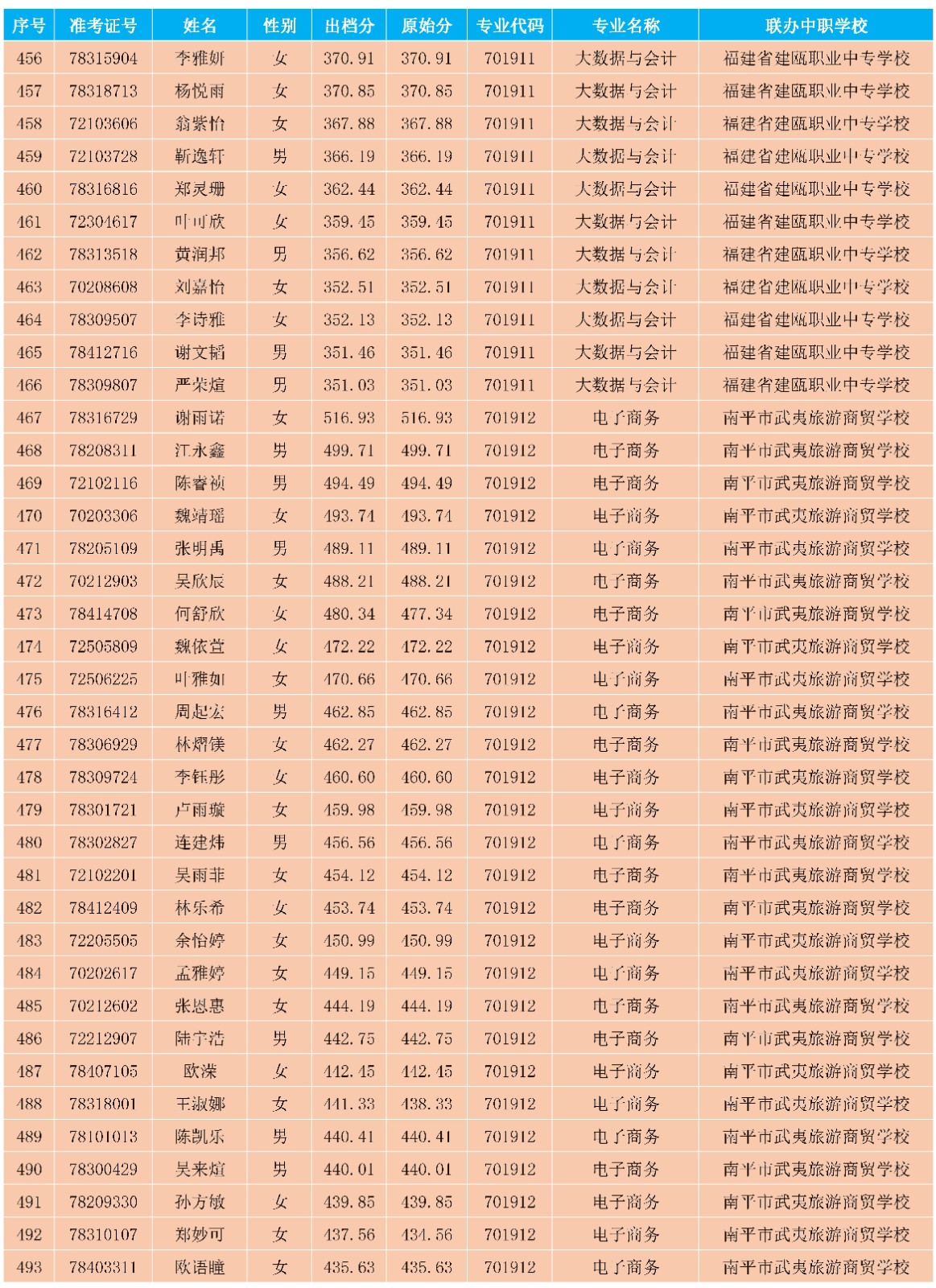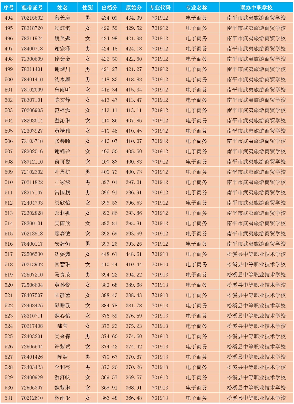 2025年彩神南平地区五年专各专业各联办校常规志愿出档名单