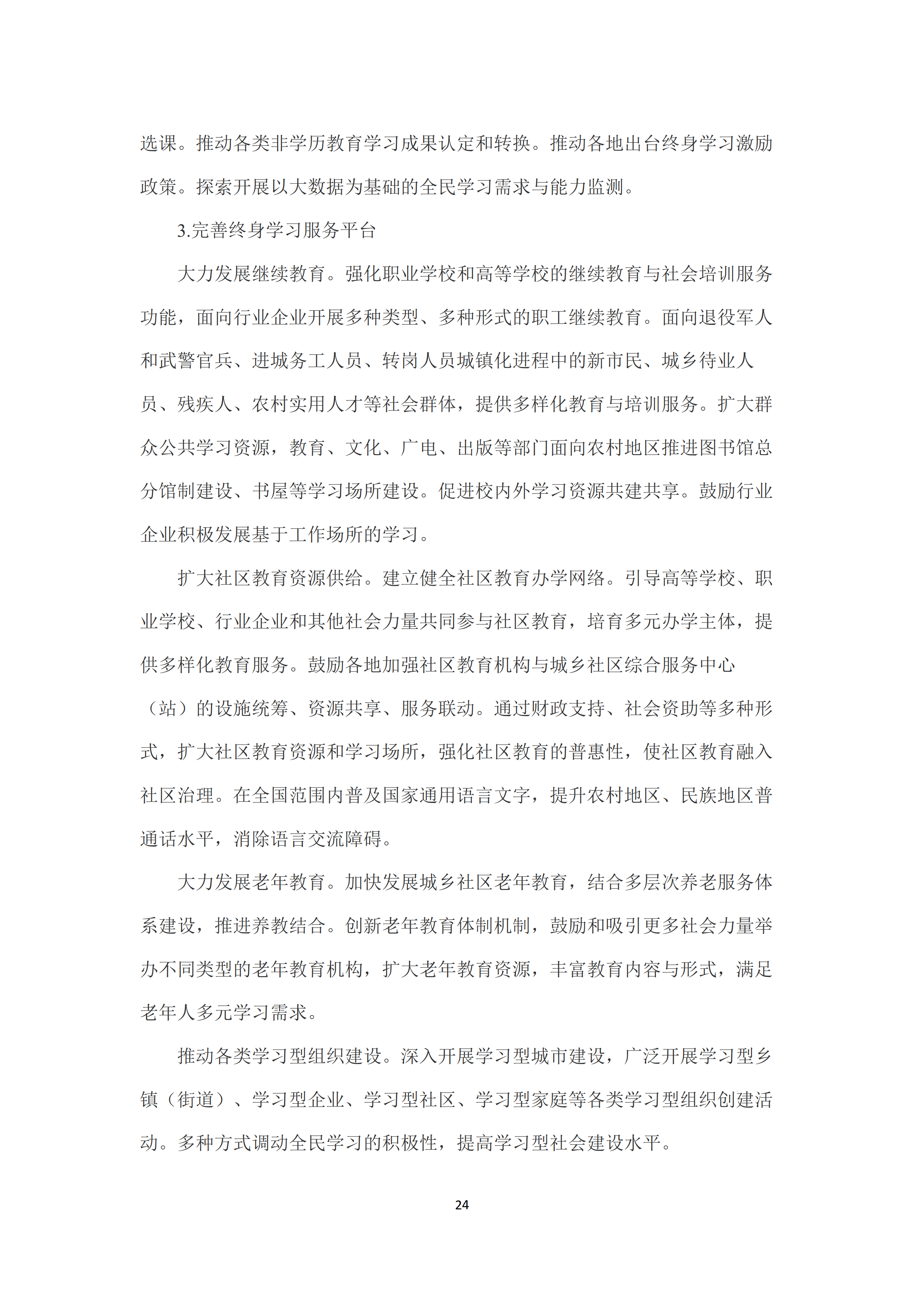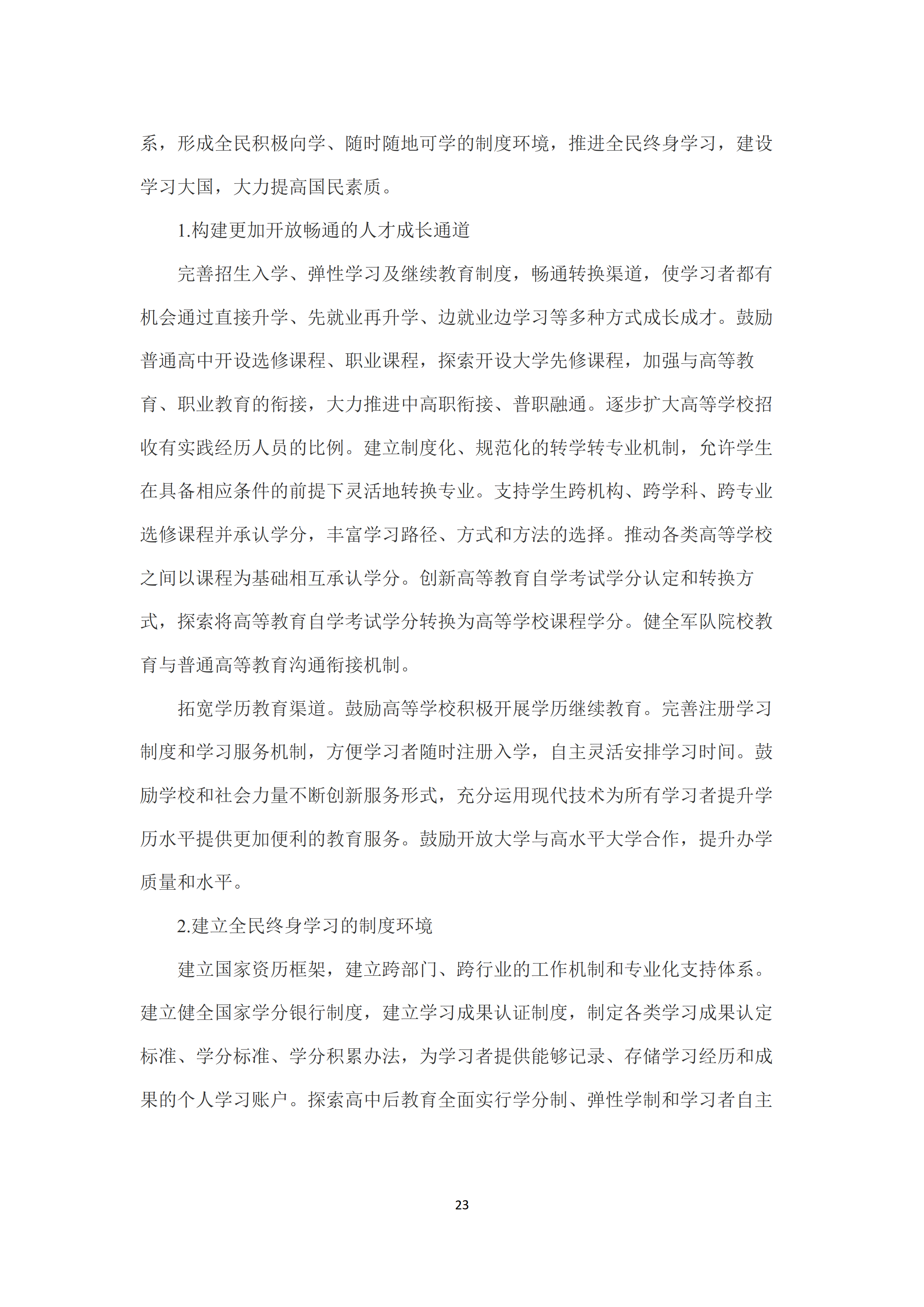五是构建服务全民的终身学习体系🙍🏿‍♂️。构建更加开放畅通的人才成长通道🧏🏻,完善招生入学、弹性学习及继续教育制度,畅通转换渠道。建立全民终身学习的制度环境,建立国家资历框架,建立跨部门跨行业的工作机制和专业化支持体系。建立健全国家学分银行制度和学习成果认证制度🚕。强化职业学校和高等学校的继续教育与社会培训服务功能,开展多类型多形式的职工继续教育🦤。扩大社区教育资源供给,加快发展城乡社区老年教育⛰,推动各类学习型组织建设。