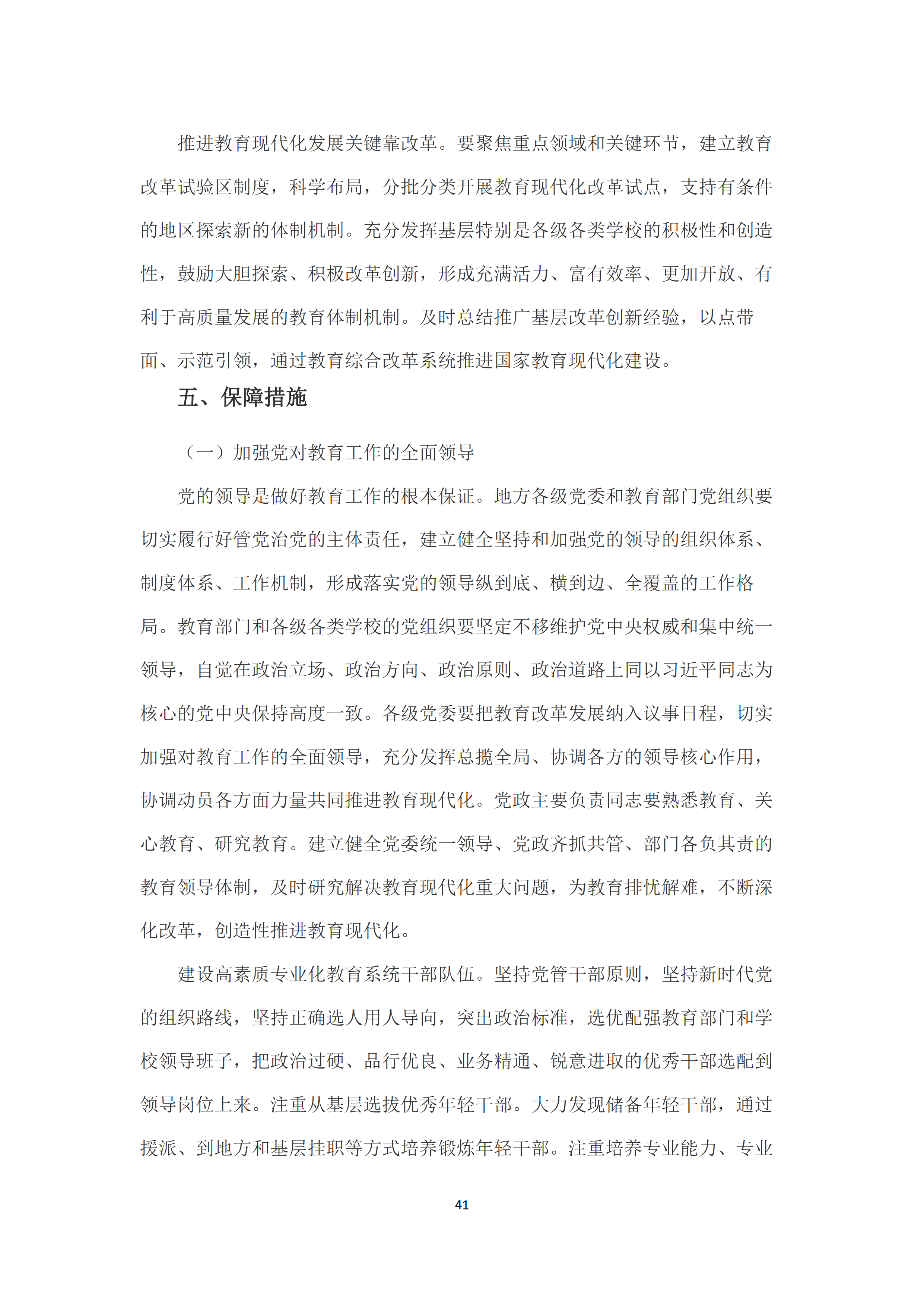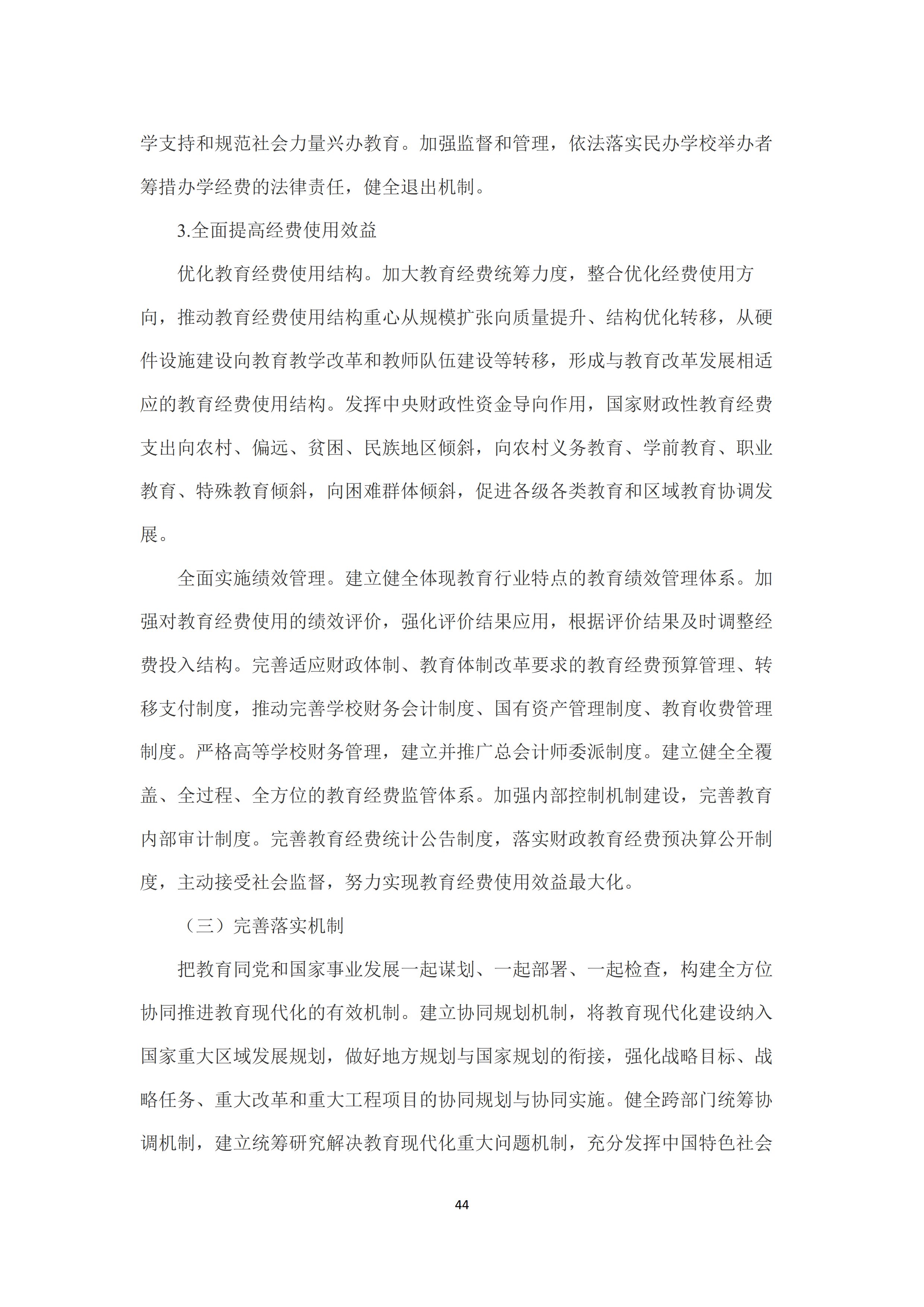 为确保教育现代化目标任务的实现,《中国教育现代化2035》明确了三个方面的保障措施🧚: