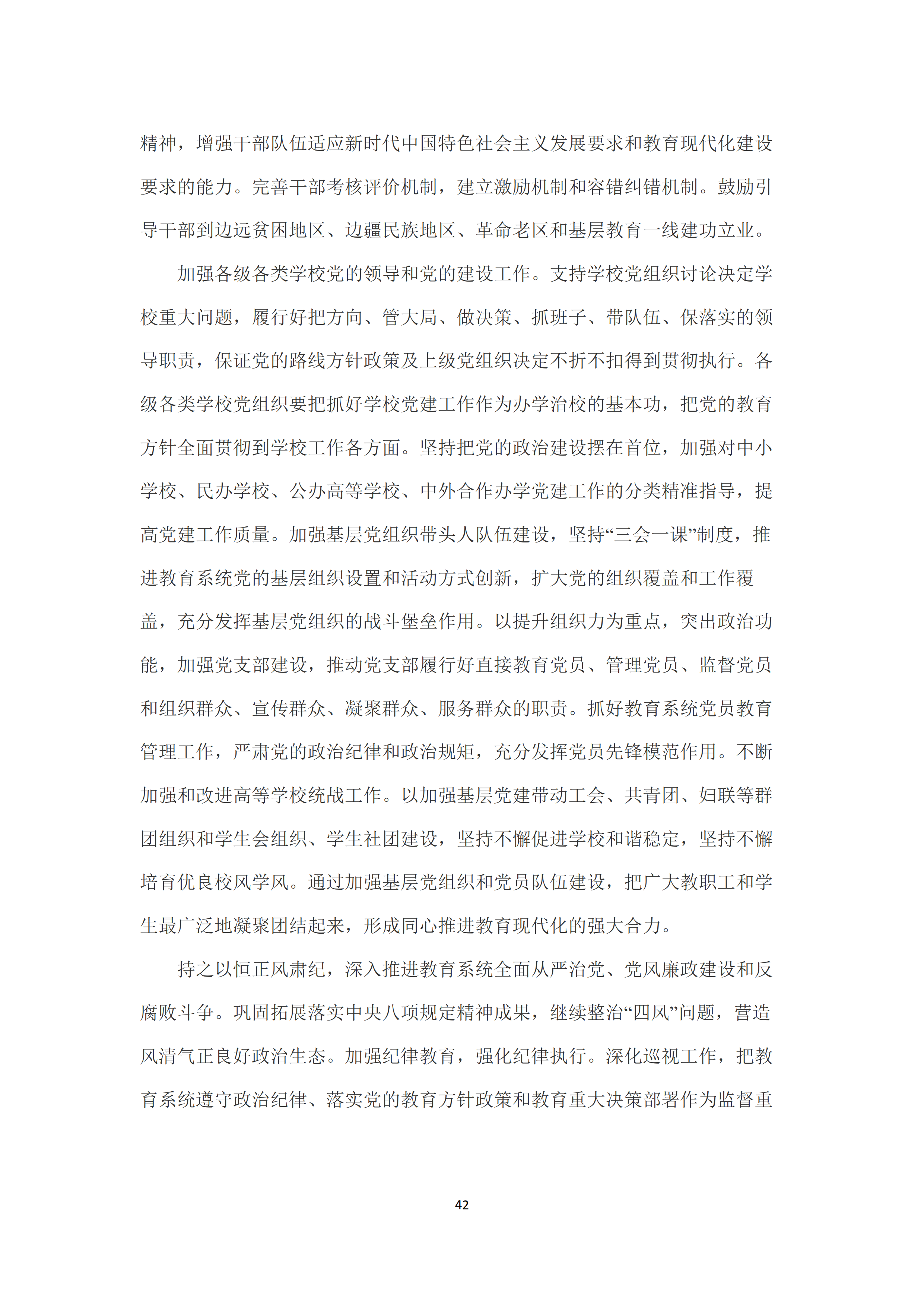一是加强党对教育工作的全面领导🖤。各级党委要把教育改革发展纳入议事日程🚊,协调动员各方面力量共同推进教育现代化。建立健全党委统一领导🤶🏽、党政齐抓共管、部门各负其责的教育领导体制♤💕。建设高素质专业化教育系统干部队伍👨‍👨‍👦。加强各级各类学校党的领导和党的建设工作。深入推进教育系统全面从严治党、党风廉政建设和反腐败斗争👨🏻‍🦽。